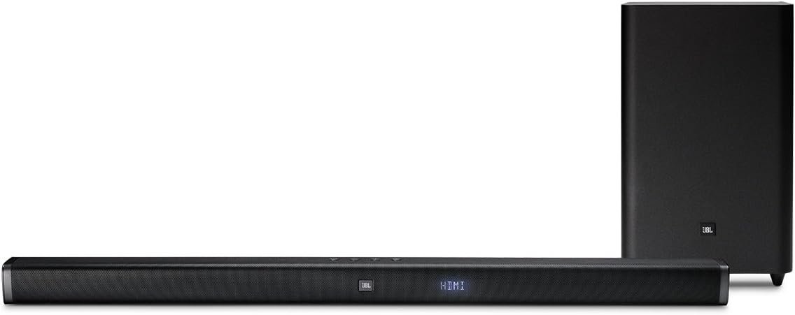Designed with a slimmer profile Le, the full-featured, easy-to-use JBL bar 2.1 features Dolby digital, JBL Surround sound, 300W system power and a wireless 6.5″ Subwoofer to provide balanced sound and deep bass for your movies, music and even video games. Full featured in every sense of the word, it has an HDMI input as well as aux and USB wired connections that enable you to round out your home entertainment options even more. It is also Bluetooth enabled for convenient wireless connections. Further enhanced with JBL soundshift which allows you to instantly switch between sound from your TV and sound from your mobile phone or tablet. You can Moreover control the sound bar with your existing TV remote control, The JBL bar 2.1 clearly raises the bar for sound bars.