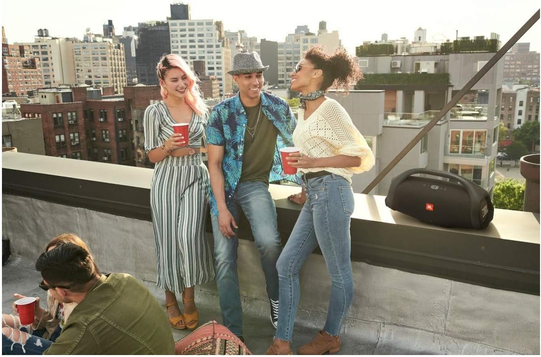 IPX7 WATERPROOF: Bring your speakers anywhere. Pool party Perfect. Sudden rainstorm Covered. Bash on the beach JBL Boombox 2 is IPX7 waterproof for fearless outdoor entertainment.