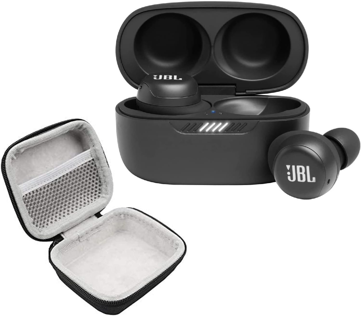 JBL Live Free NC+ in-Ear True Wireless Active Noise Cancelling Bluetooth Headphones Travel Bundle with Deluxe CCI Protective Case (Black)