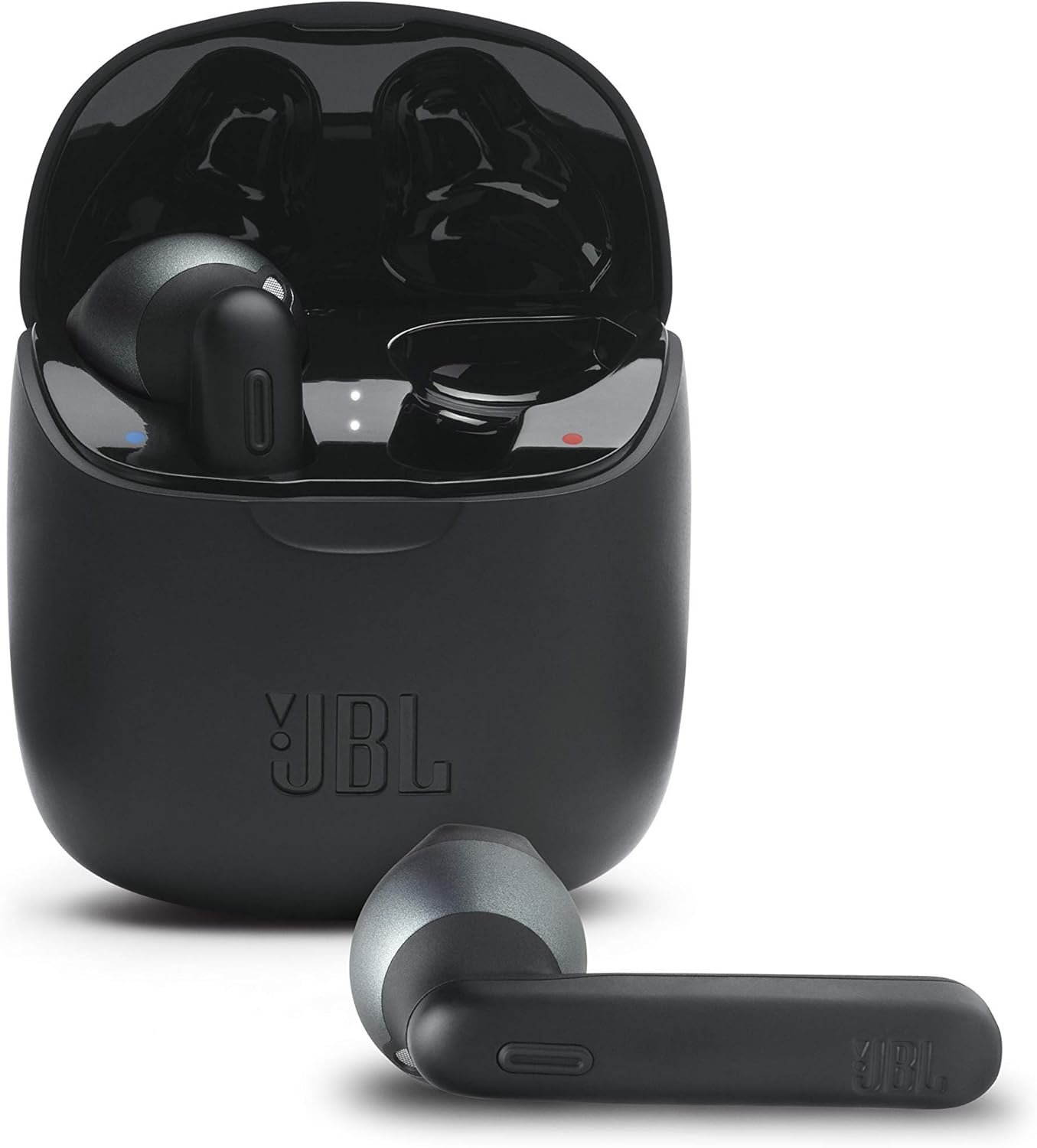SLEEK CHARGING CASE: The charging case for the JBL Tune 225TWS wireless headphones is as thoughtfully designed as the earbuds it holds, with a shape inspired by a river stone, a soft body, and a curved lid that pops up to give you fast access to your buds