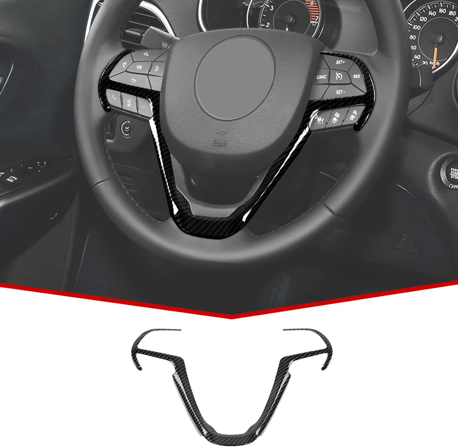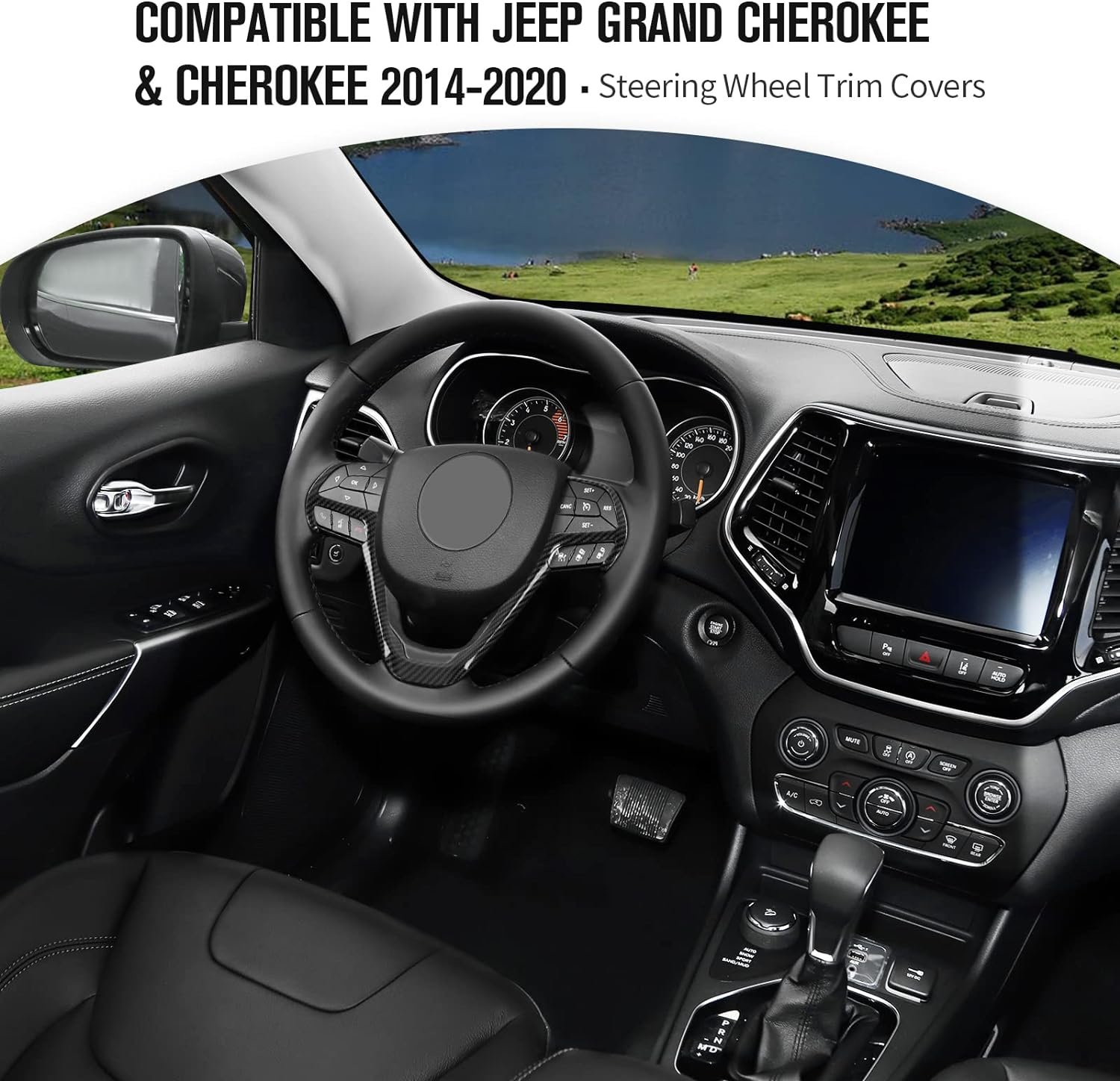 JeCar Steering Wheel Trim Cover Interior Decoration Trim Kit for 2014-2020 Jeep Grand Cherokee & Jeep Cherokee, Carbon Fiber Texture
