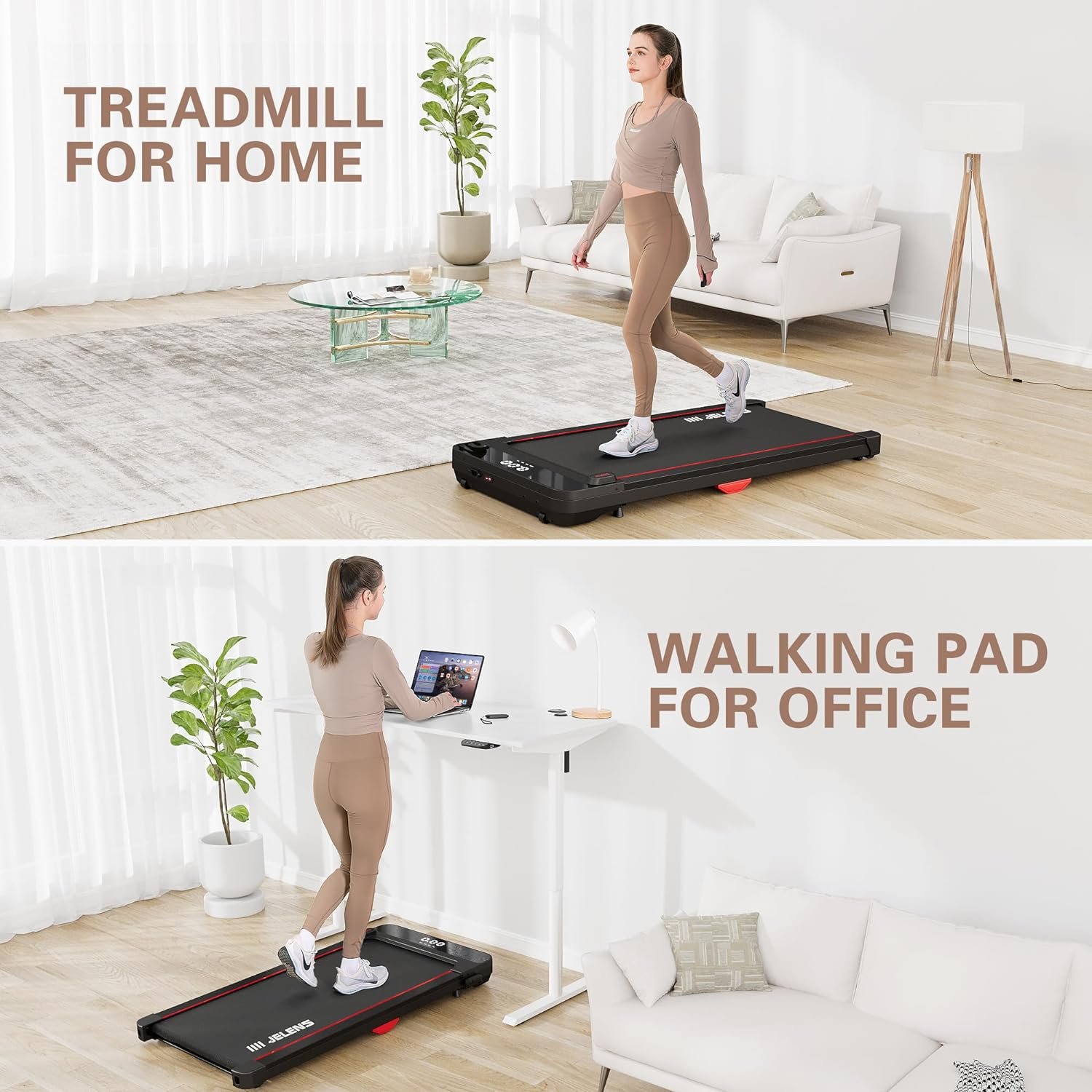【2 in 1 Walking Pad】This JELENS treadmill has a speed range of 0.5-3.8 miles per hour. You can place it under the desk and walk while working to relieve muscle soreness caused by prolonged sitting. When further exercise is needed, you can gradually accelerate and jog to better optimize your body curves.