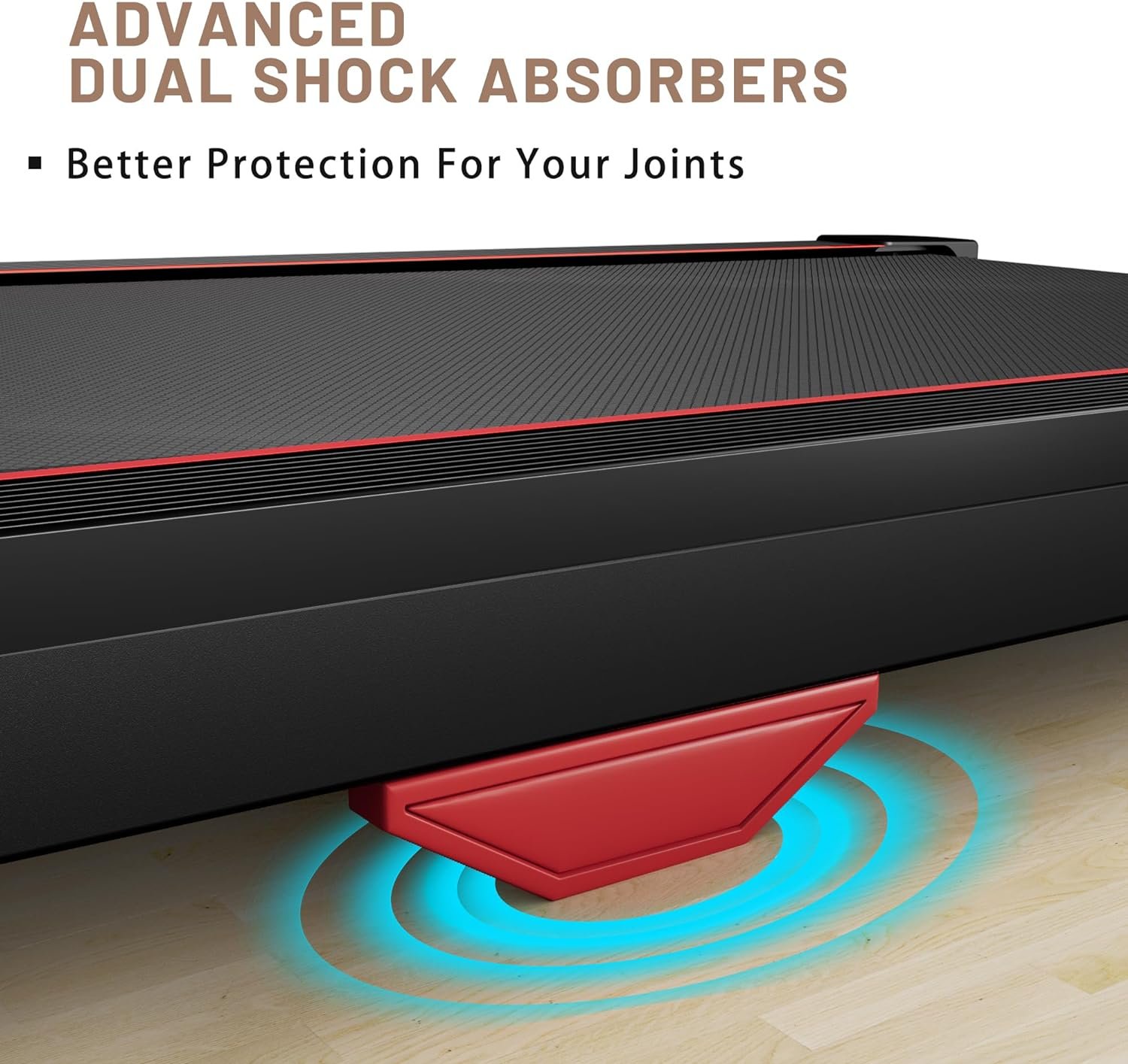 【Shock Absorption System】Equipped with advanced dual shock absorbers at the bottom, 4 adjustable foot pads, and 5-layer running belt technology, it makes your walking more stable, running more comfortable, and protect your knees.