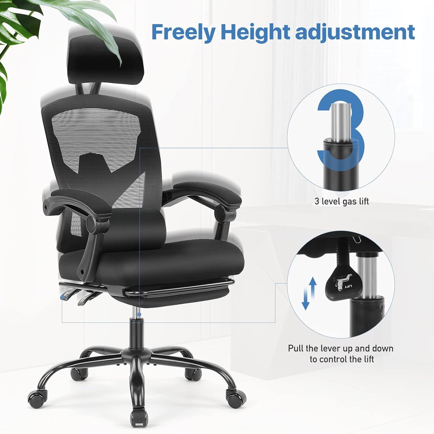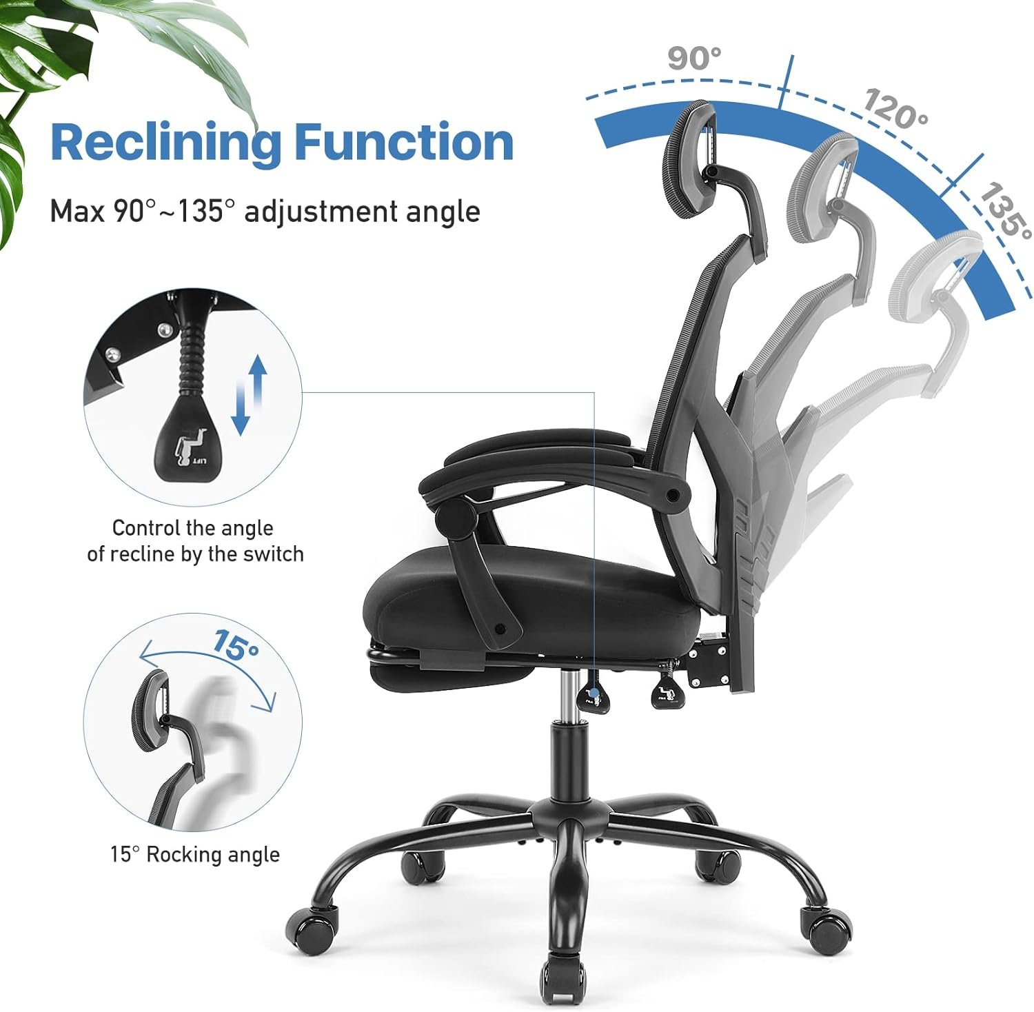 ✨【RECLINING AND LOCKING BACKREST】 – After long hours of sitting in a home office chair working, studying, or playing games, your brain and eyes sometimes need a break. A good ergonomic chair with a reclining and lockable backrest is a plus. You’ll be able to adjust the lever and knob to tilt the backrest to the angle you want, put on your headphones, close your eyes, and enjoy a truly comfortable break.
