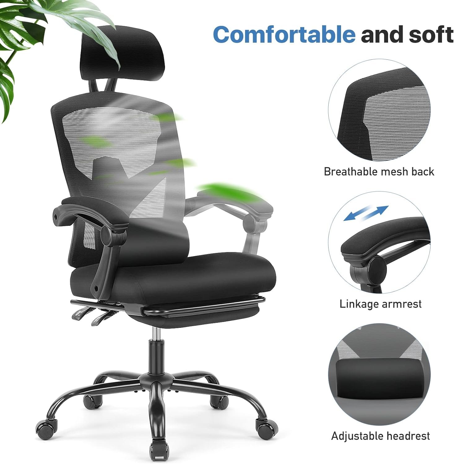 ✨【POWERFUL LUMBAR SUPPORT】 – This mesh-backed office chair has excellent support for your lower back. It conforms well to your S lumbar curve and greatly reduces possible spinal fatigue. It can prevent spinal diseases, and an improved design of a comfortable computer chair is undoubtedly ideal for people who spend long hours working on the computer or playing games.