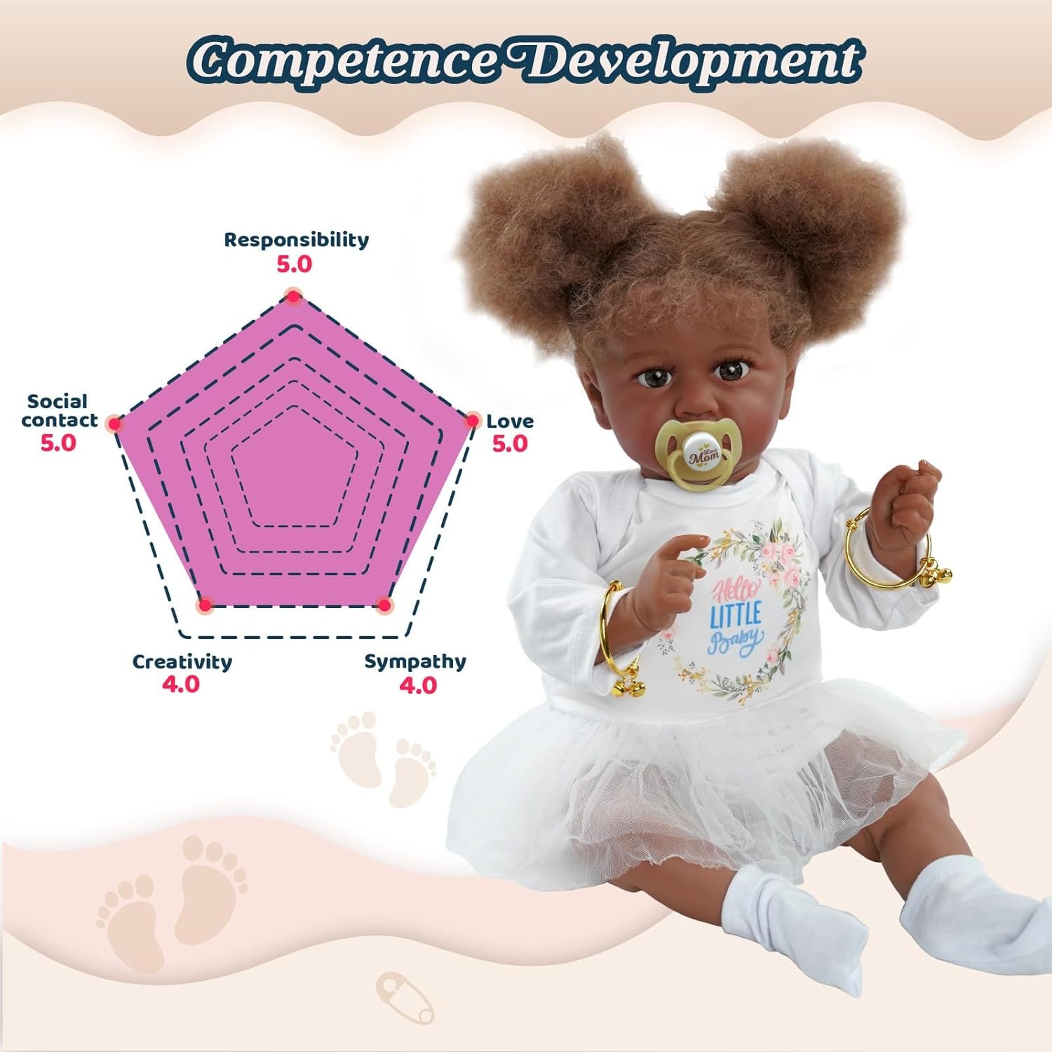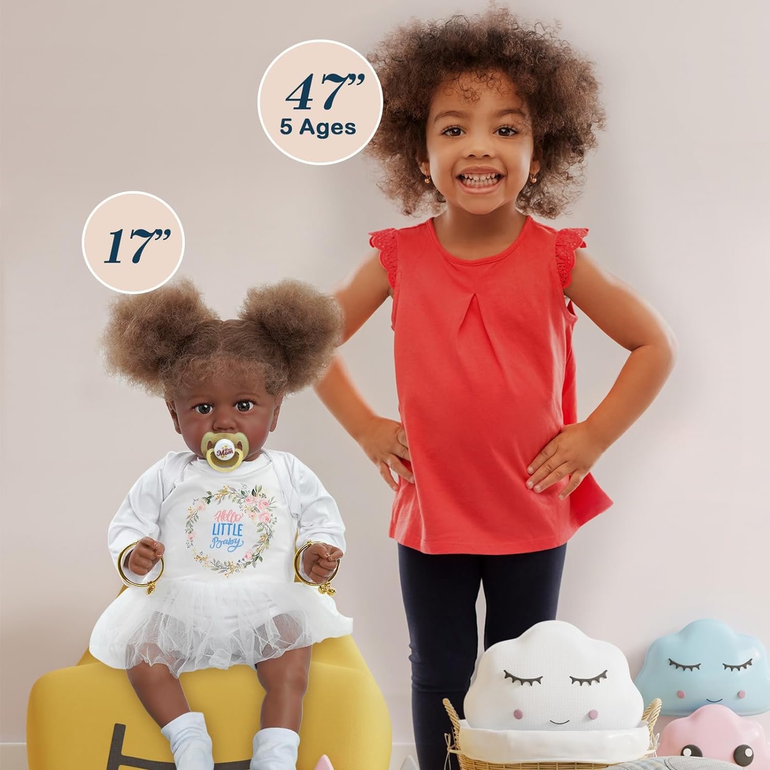 Her Size: The size of reborn baby dolls 22 inches (55cm); Weight: about 1.5KG (3.3LB). The realistic baby doll is handmade. Great for a birthday present or a Christmas gift. Your kids will develop their social and cognitive abilities from an early age.