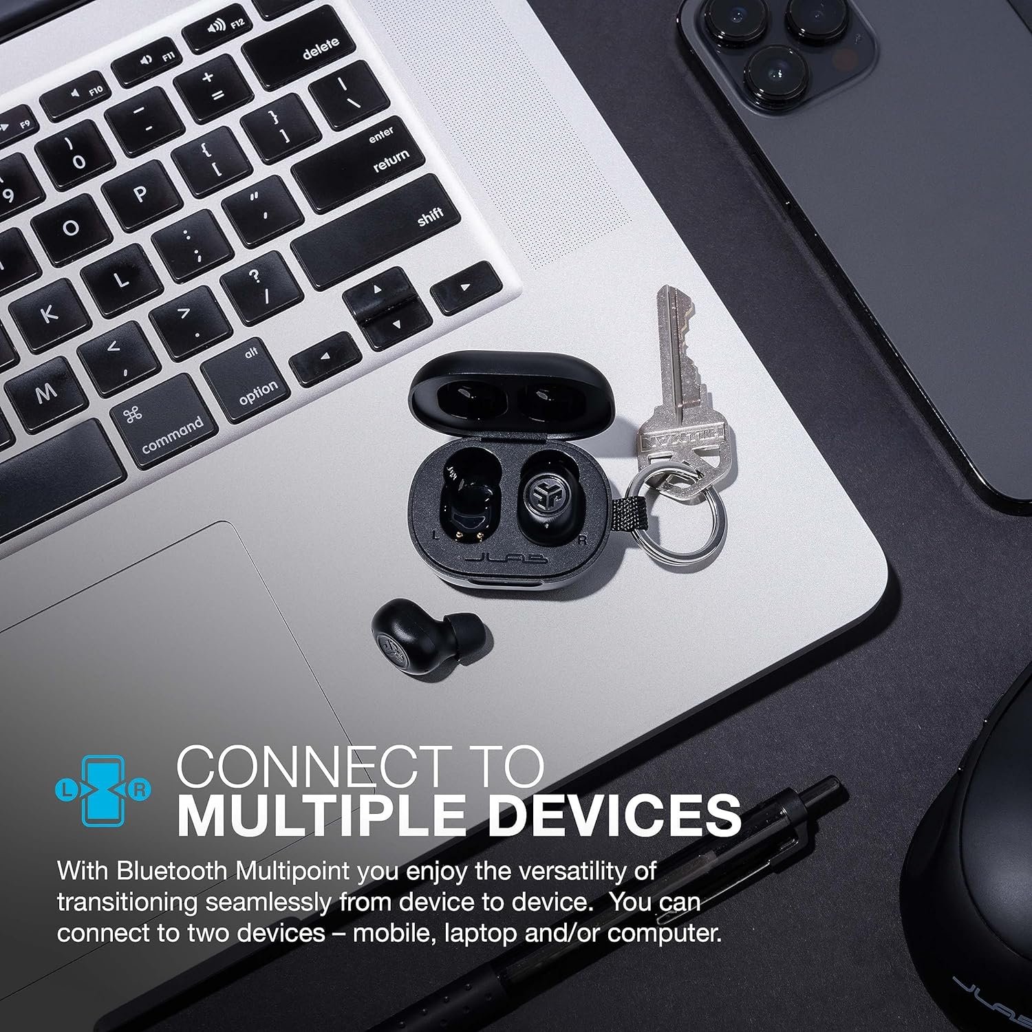 With Bluetooth Multipoint you enjoy the versatility of transitioning seamlessly from device to device. Hop from podcast on your computer to a call on your mobile. You can connect simultaneously to two devices – mobile, laptop and/or computer.