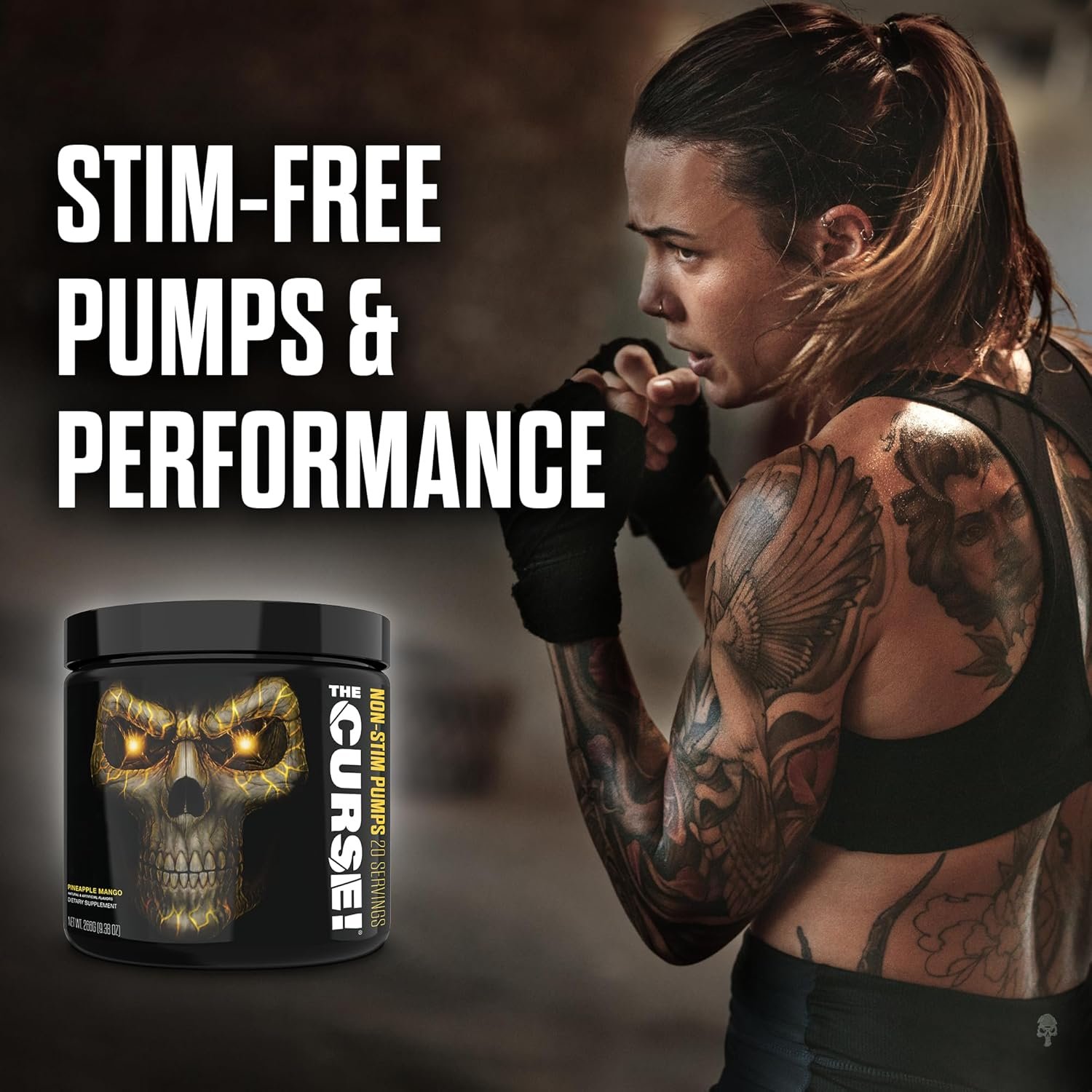 Hard-hitting Pump Pre-workout without the stimulating effects of caffeine: clinically-dosed and stimulant-free, JNX SPORTS The Curse! Non-Stim Pumps can be taken alone or stacked with your fav JNX SPORTS supps for a workout that unleashes mayhem and sends the status quo packing. Pineapple Mango flavor. 20 (13.3g) servings per container.