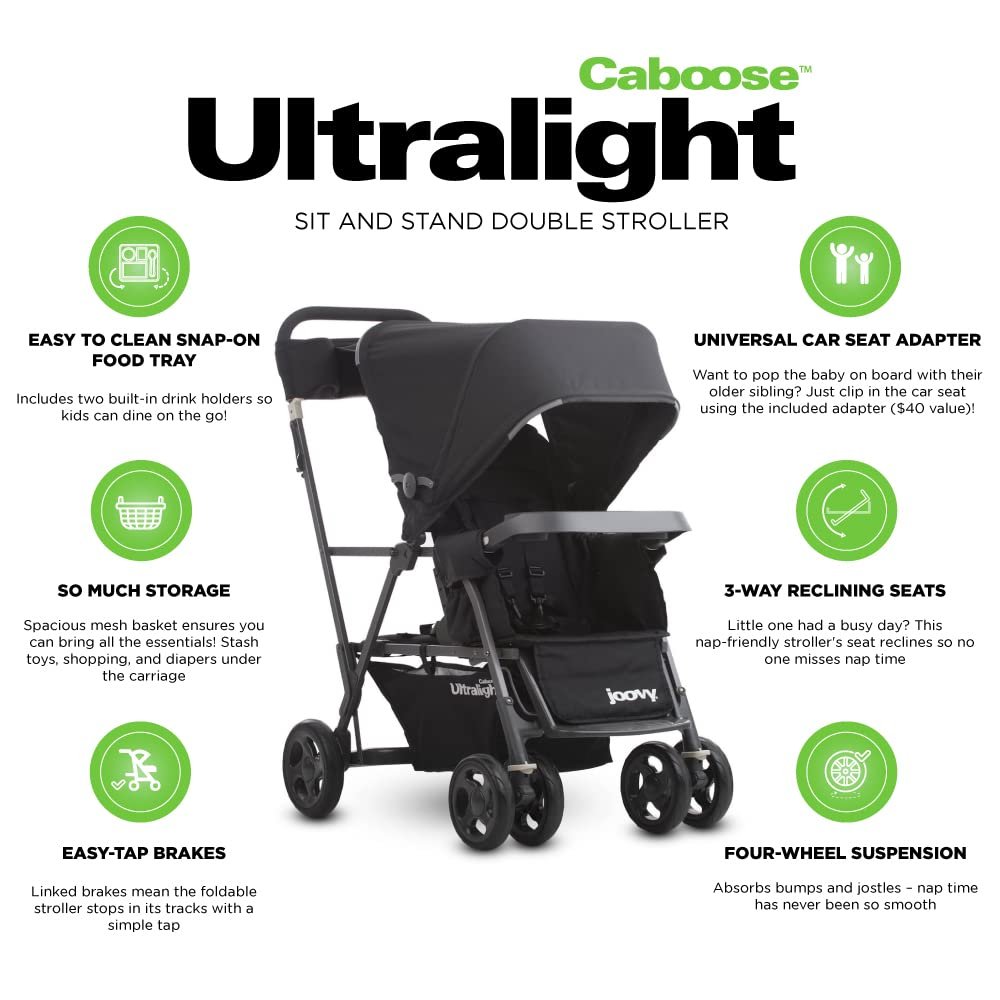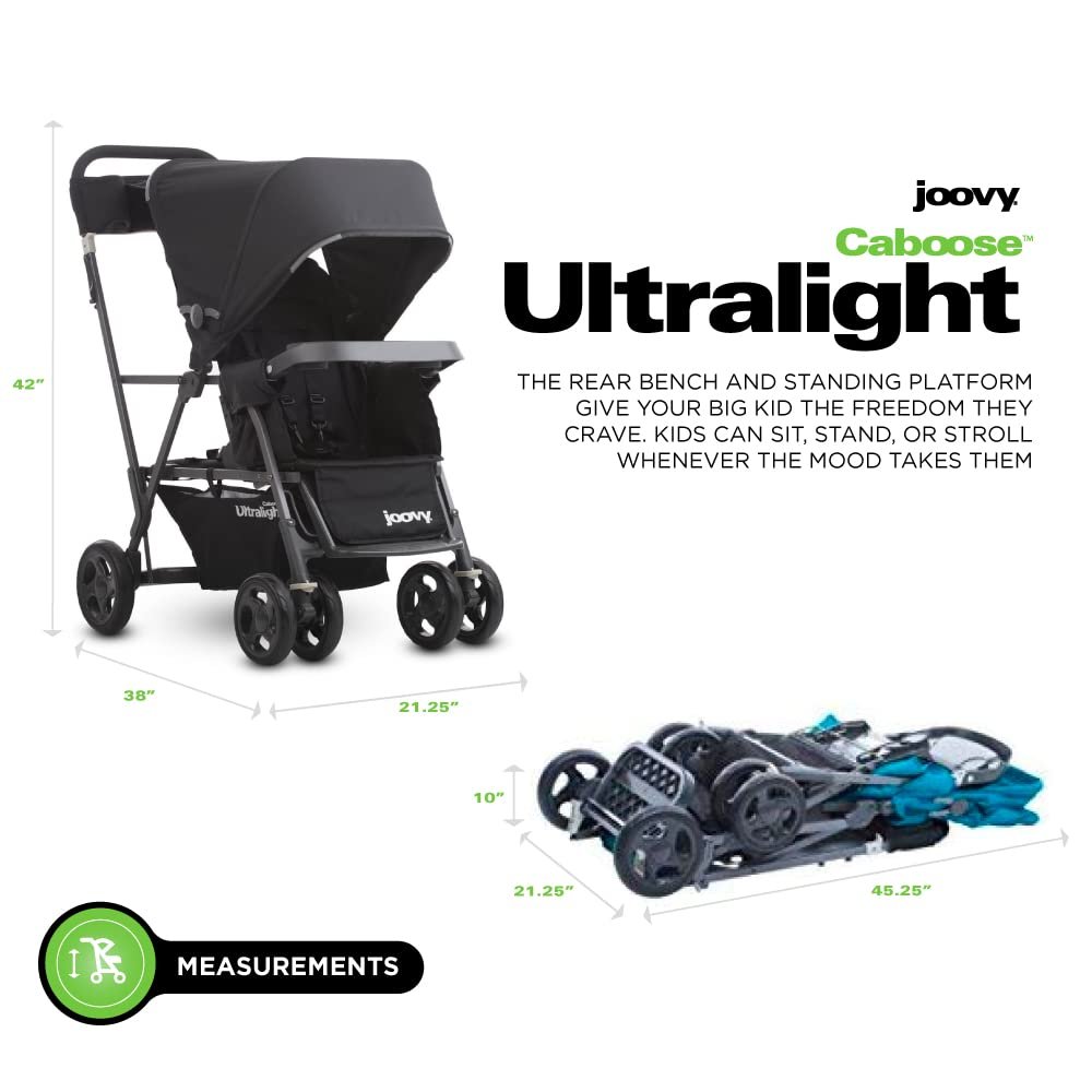 BUILT FOR FAMILY, DESIGNED FOR LIFE – Joovy believes that happy, healthy parents produce happy, healthy children and the Caboose Ultralight Tandem Stroller is designed to adapt with your child, protecting two children from newborn to 45lbs