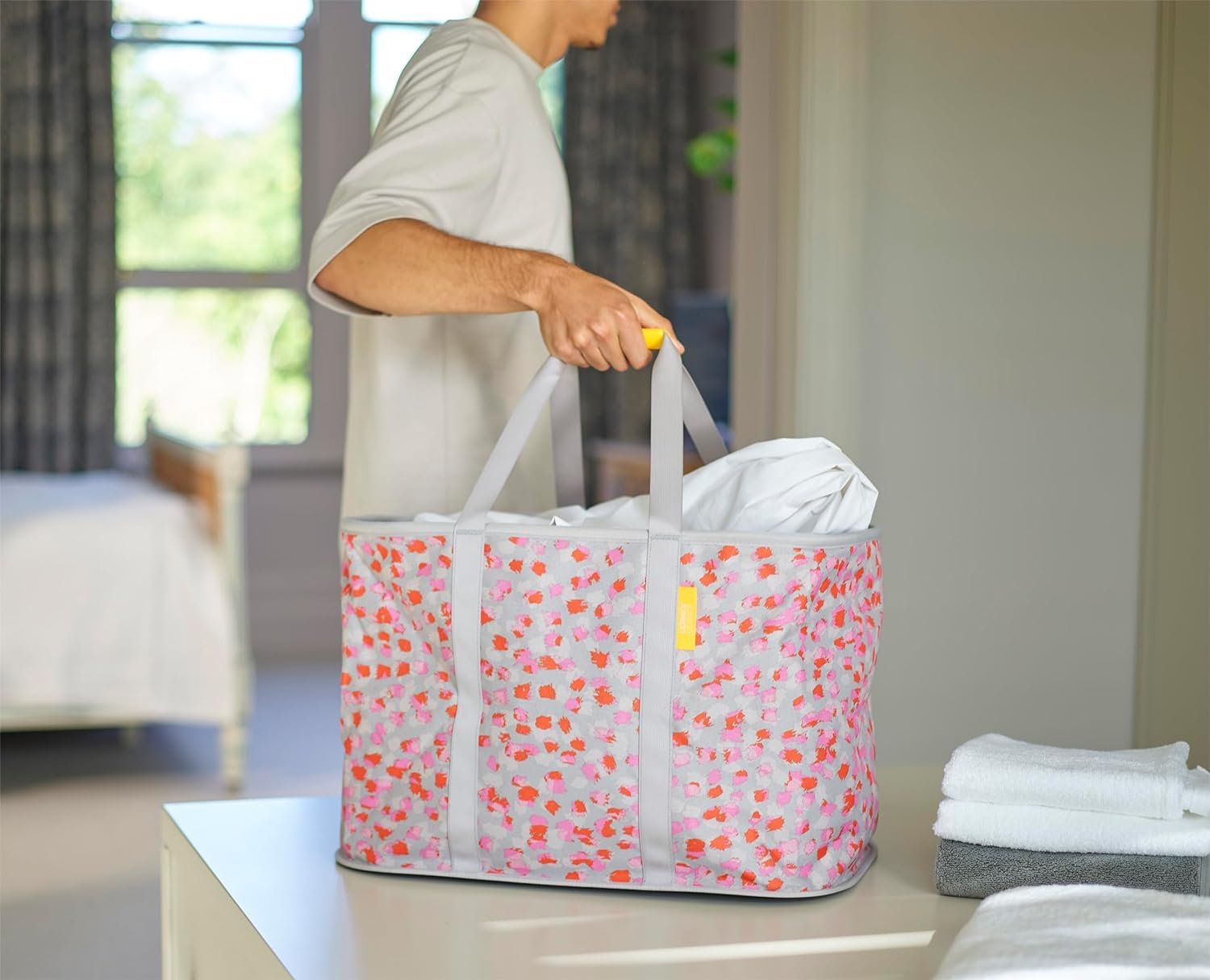 Made from durable fabric that holds its shape when empty