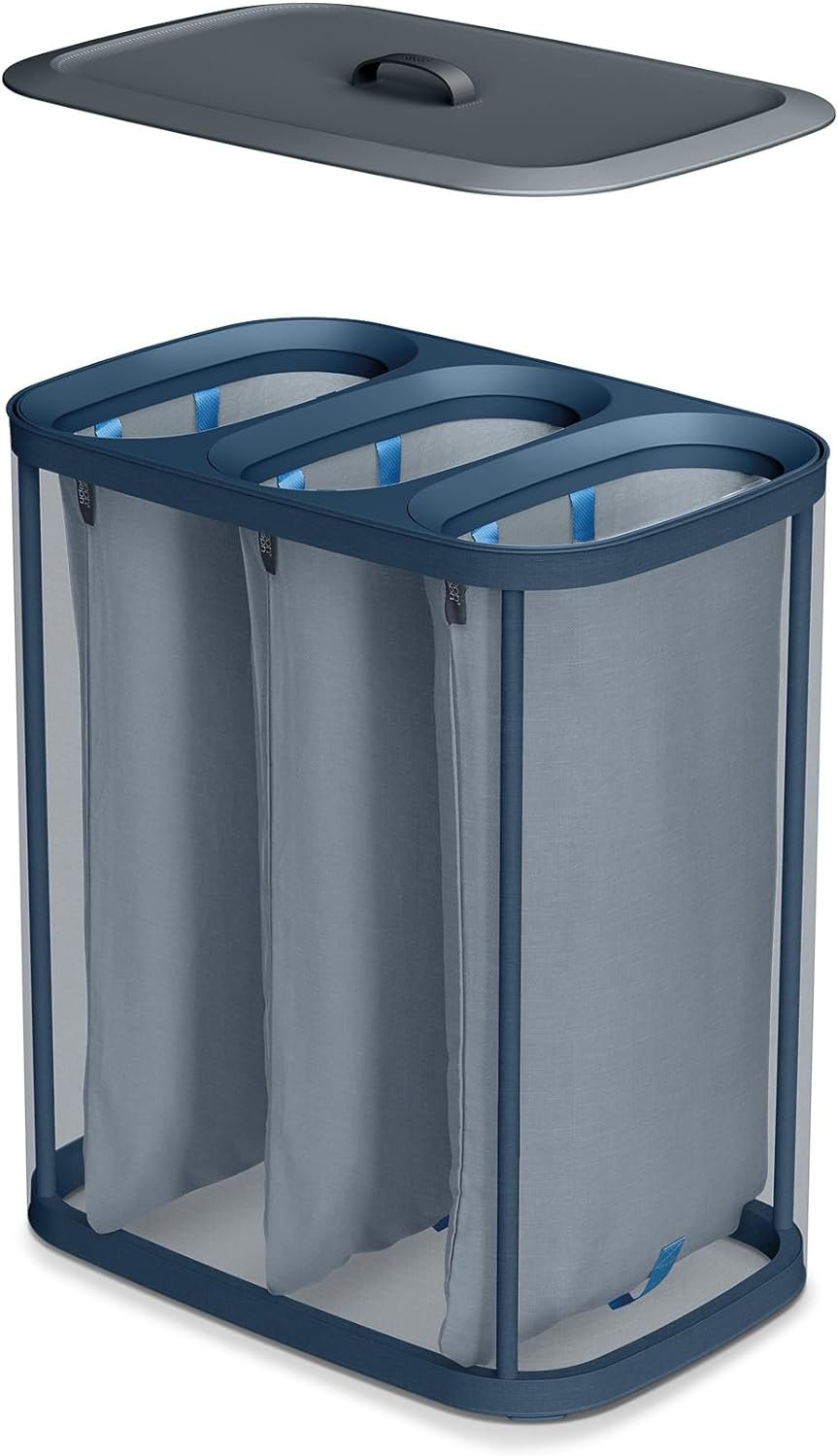 his laundry basket is designed to make washing clothes more convenient and is the ultimate solution for making wash day a breeze. With three 30-liter compartments, you can easily separate your fabrics, keeping lights and darks separate. The bags have handles at the top for easy lifting and carrying and a helper handle on the bottom for easy emptying. The basket has a self-locating rim that makes it easy to put the bags back in place after they’ve been emptied. The stylish design and neutral color complements any bedroom, bathroom or utility room, and it comes flat-packed with assembly instructions.