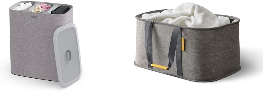 Joseph Joseph Tota Trio 90-liter Laundry Hamper Separation Basket with Lid and Removable Bags – Grey & Hold-All – Collapsible Folding 35L Washing Laundry Basket Bag