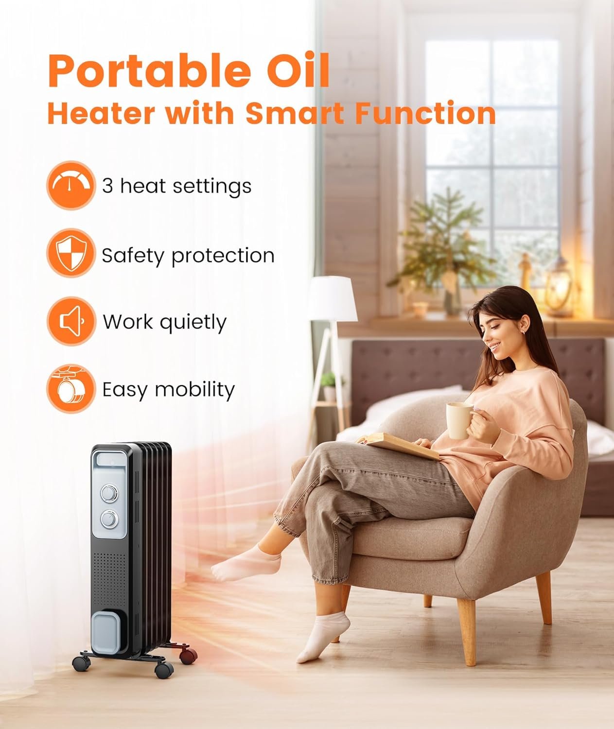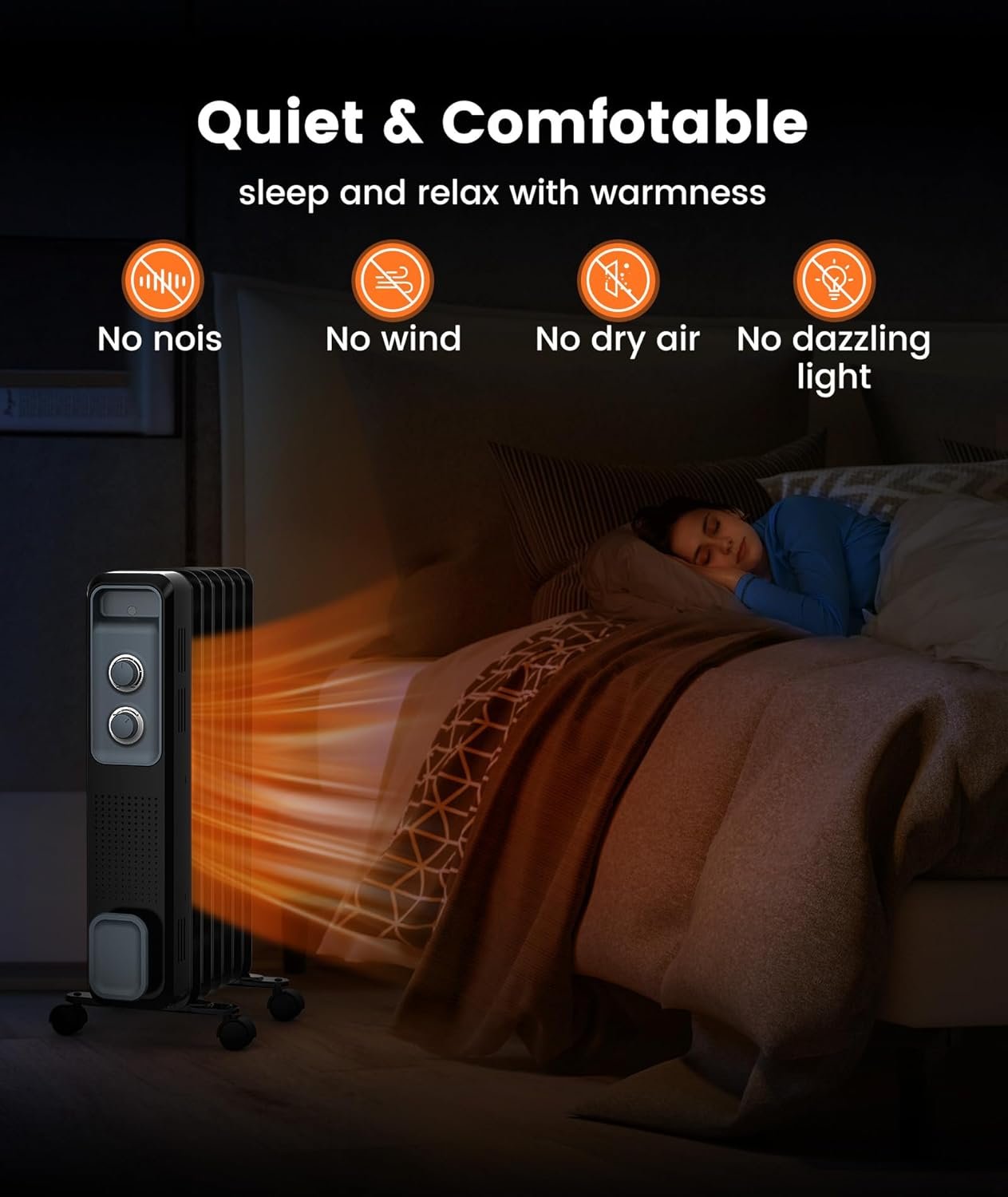 【3 Level Fast&Efficient Heating】The power of Joy Pebble oil-filled radiant heater can reach 1200W, fast and efficient heating space, 500W, 700W, 1200W three kinds of power to meet your different temperature needs, so you are no longer cold this winter.