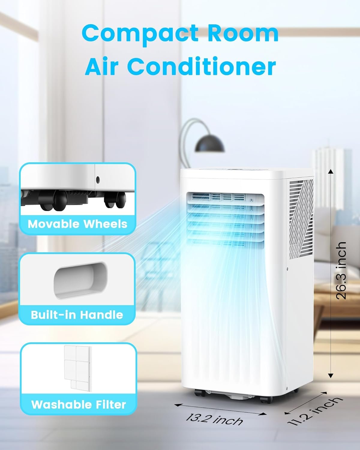 【 Easy Installation & Free Movement】 This air conditioner comes with window venting kits and detailed instruction,And it can fit to install the exhaust hose easily to different windows.Featuring 4 universal swivel casters make it Move freely, Air filter is detachable for washing,Make clean and fresh cool wind