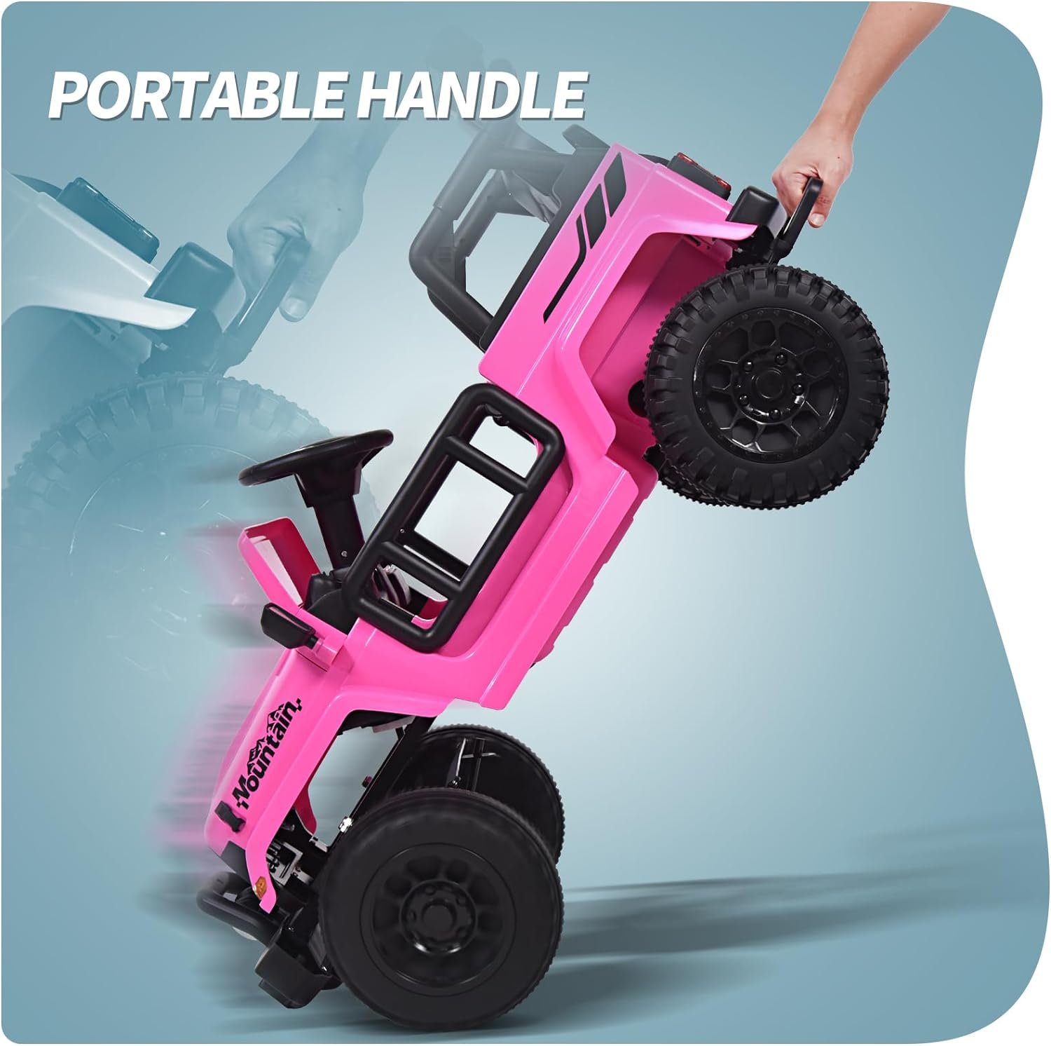 Fun Driving Experience-This electric truck comes with bright LED headlights and colorful tail lights, allowing kids to play freely even in the dark. The wireless music player, FM radio, and real car engine sound provide children with a real driving experience.The eye-catching appearance and well-designed stickers can be a big surprise for kids. Portable handle for easy move when battery runs out on the way.