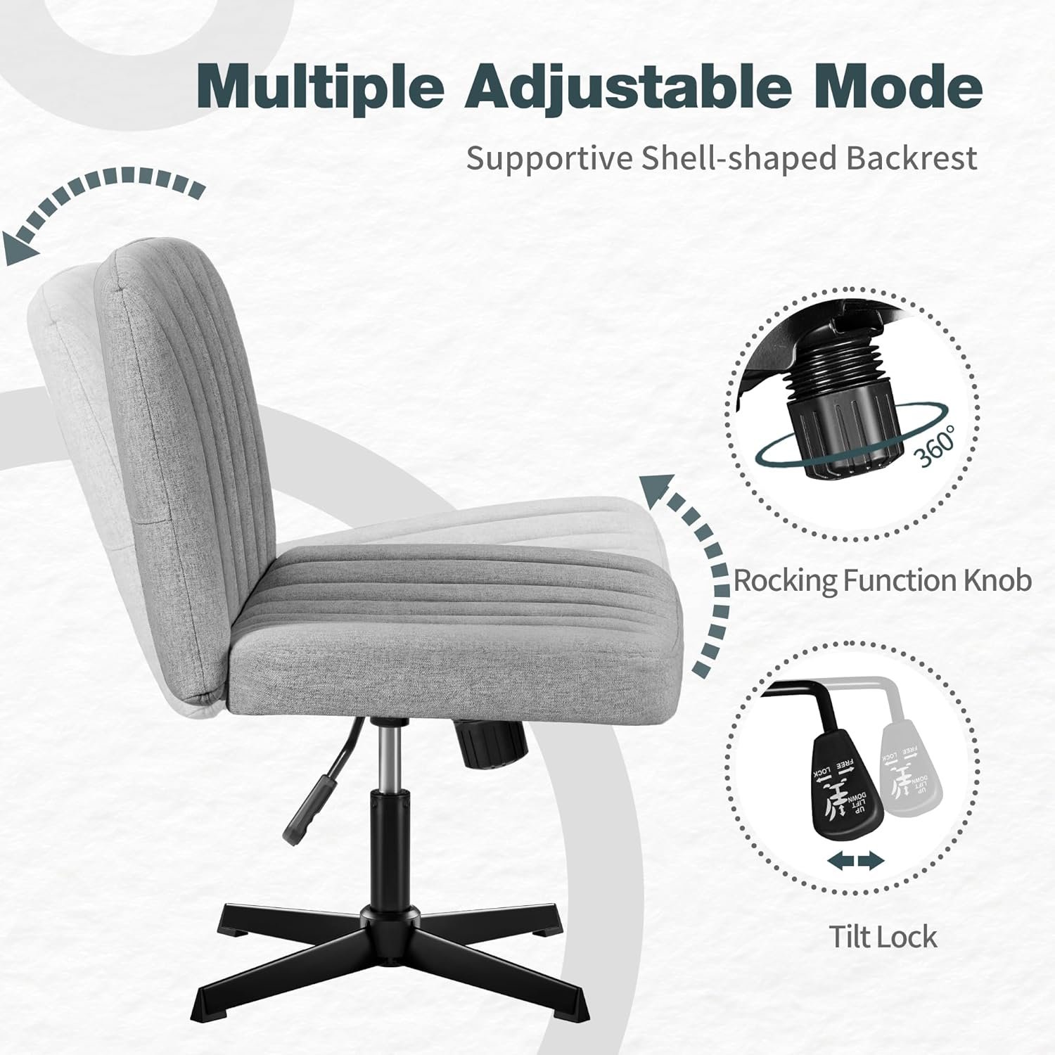 Height Adjustable: This comfy desk chair has 5 inches adjustable heights, making it suitable for teenagers, adults, and the elderly. Users can adjust the seat height according to their needs, or adjust the tilt angle of the backrest through the rocking function knob below the seat.