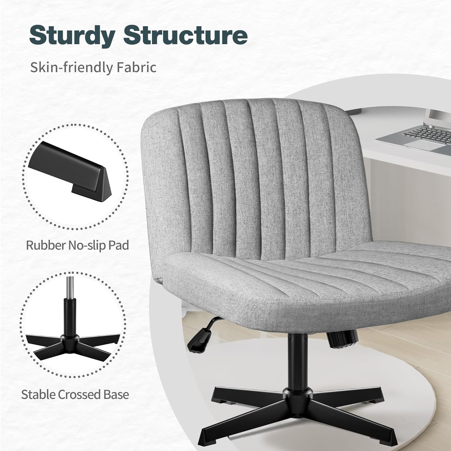 Sturdy Structure: The high-quality gas spring and sturdy cross base provide strong support and can withstand up to 240 lbs of pressure. The feet of this criss cross chair have a rubber cover to prevent the chair from sliding and do not damage the floor.
