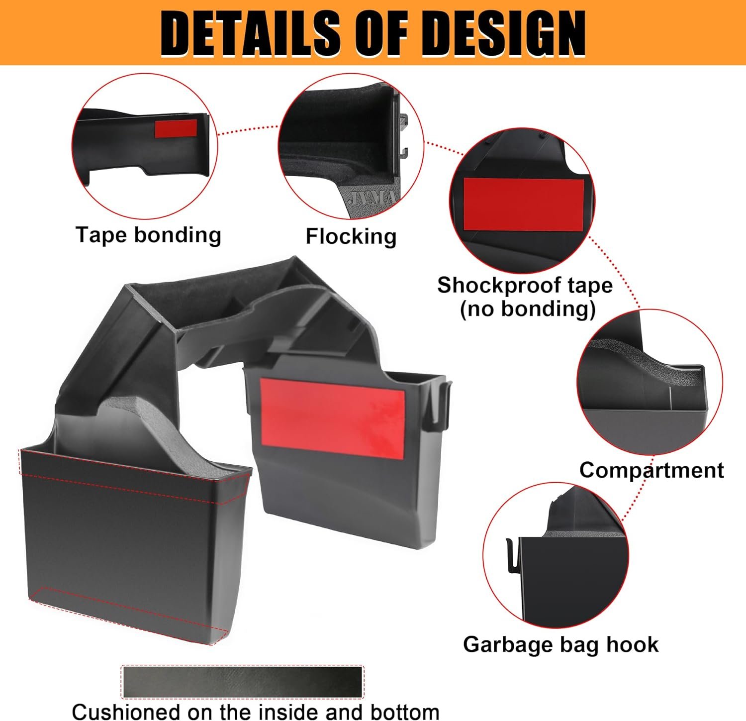 【BOTH 2/4 DOOR】This gear tray design with assembly, suitable for 2 and 4 door model, don’t use the tape on the side box for 2 door Jeep. Pull out the gear shift side box and the front seat slides freely, easy access for rear passengers.