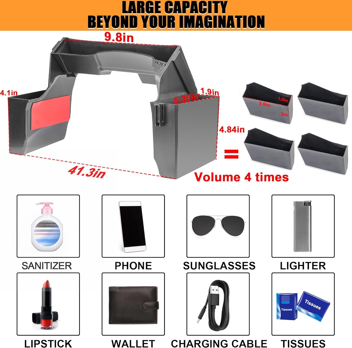 【4 TIMES CAPACITY】Large size, more than 4 times the capacity of the JVMA early gear shift side storage box, a larger phone can stand up without falling down, the middle part is flocking, snug place sunglasses, perfect for a cell phone connected to CarPlay, can hold hand sanitizer, lipstick, wallet, tissues etc.