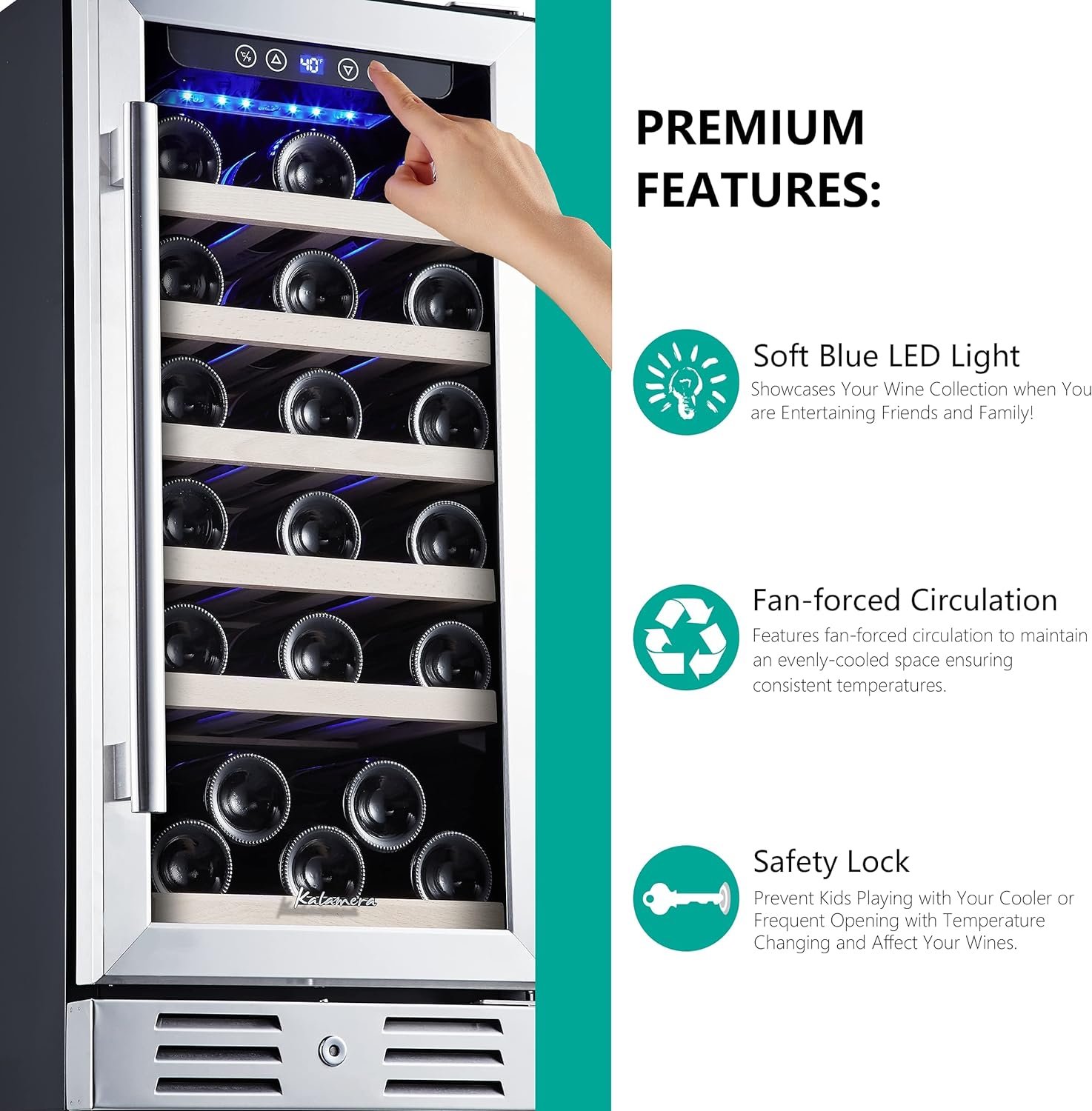 ★SINGLE ZONE: LED control display makes it easy to set temperature from 40-66°F, providing perfect chilling temperature at all times! Kalamera unique design makes this small wine cooler could be installed as a built-in wine cooler or freestanding wine fridges. This mini wine cooler could hold the drink you like too. You would not just enjoy your wine, could enjoy your drink too.