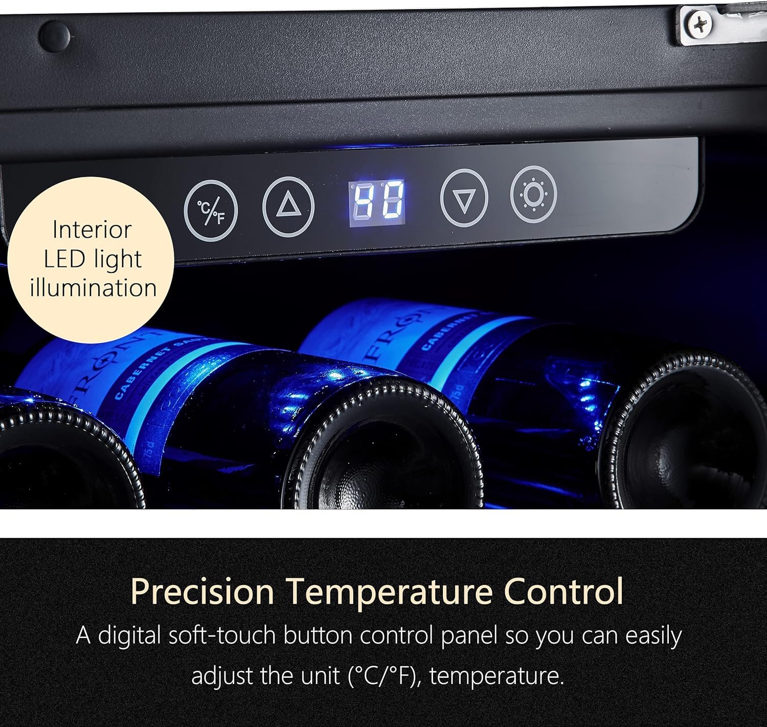 LED temperature display enables you to tune the temperature to your favorite degree between 40~66°F .