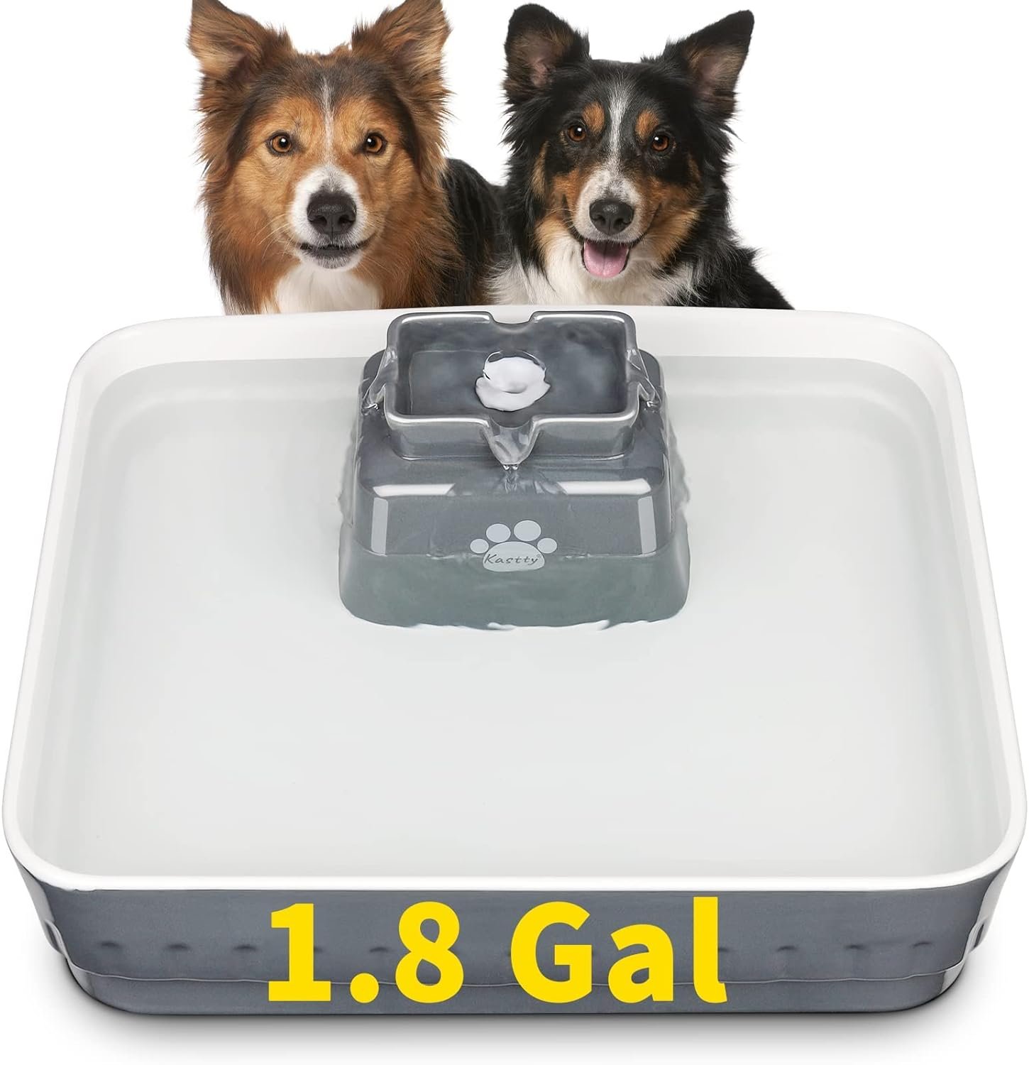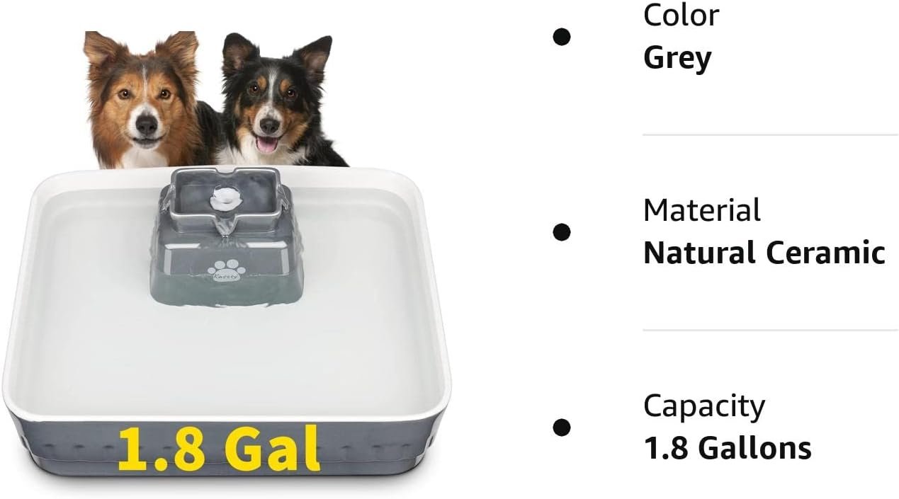 【1.8 Gallon Large Capacity】 This dog water dispenser has a 1.8 gallon water basin(exceeds the capacity of most water fountains), which lasts longer per fill than you leave, even larger pets use it or multiple pets share it. Thickened and reinforced ceramic version on the market, solidly made to last, has enough weight to itself so it won’t be tipped over by pets, though they are of curiosity and fond of exploring the unknown with paws.