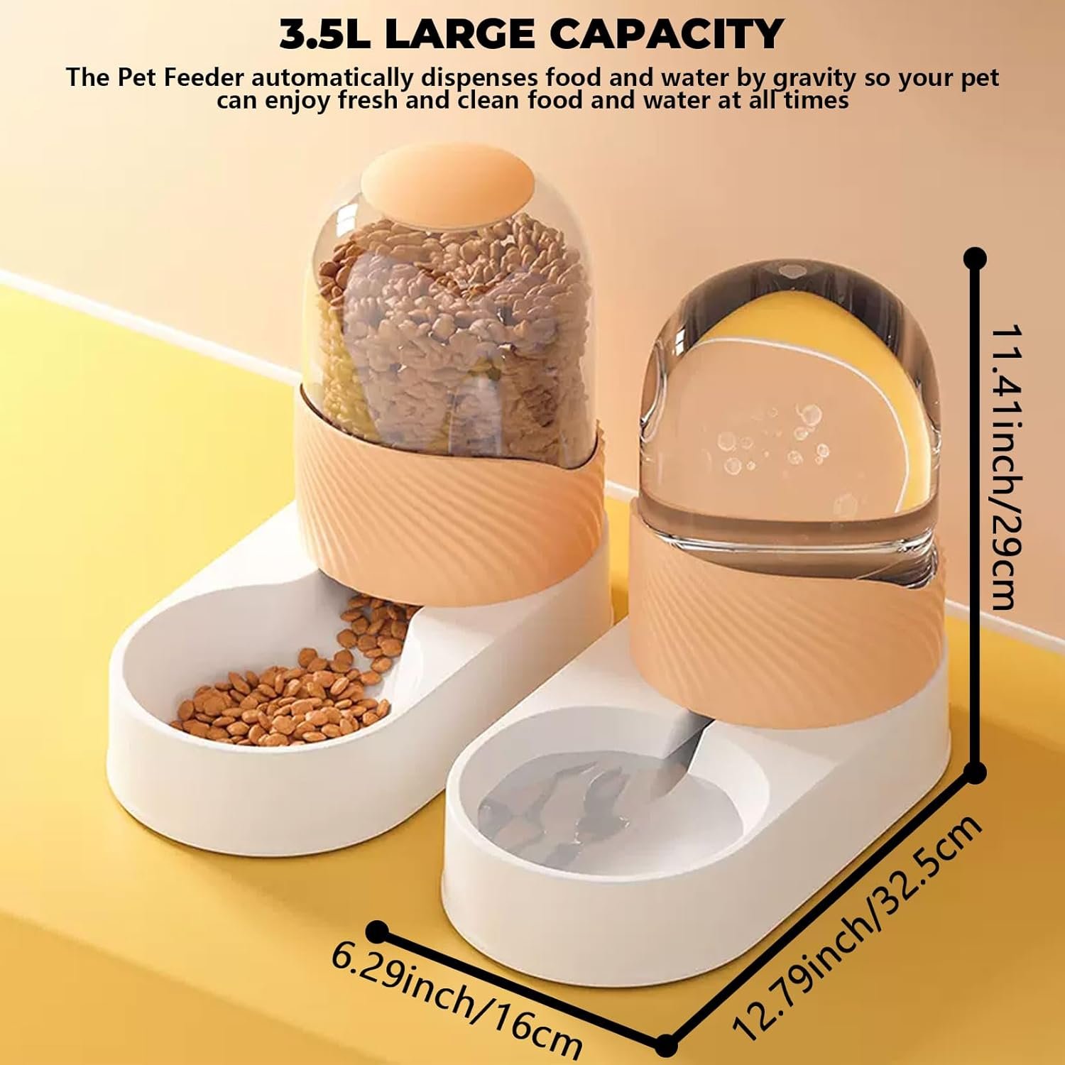 kathson Automatic Dog Feeders 3.5L Gravity Water and Food Dispenser Set Large Capacity Cat Water Bowl Dispenser Pet Food Feeder Self Feeding Station for Puppy Kitten