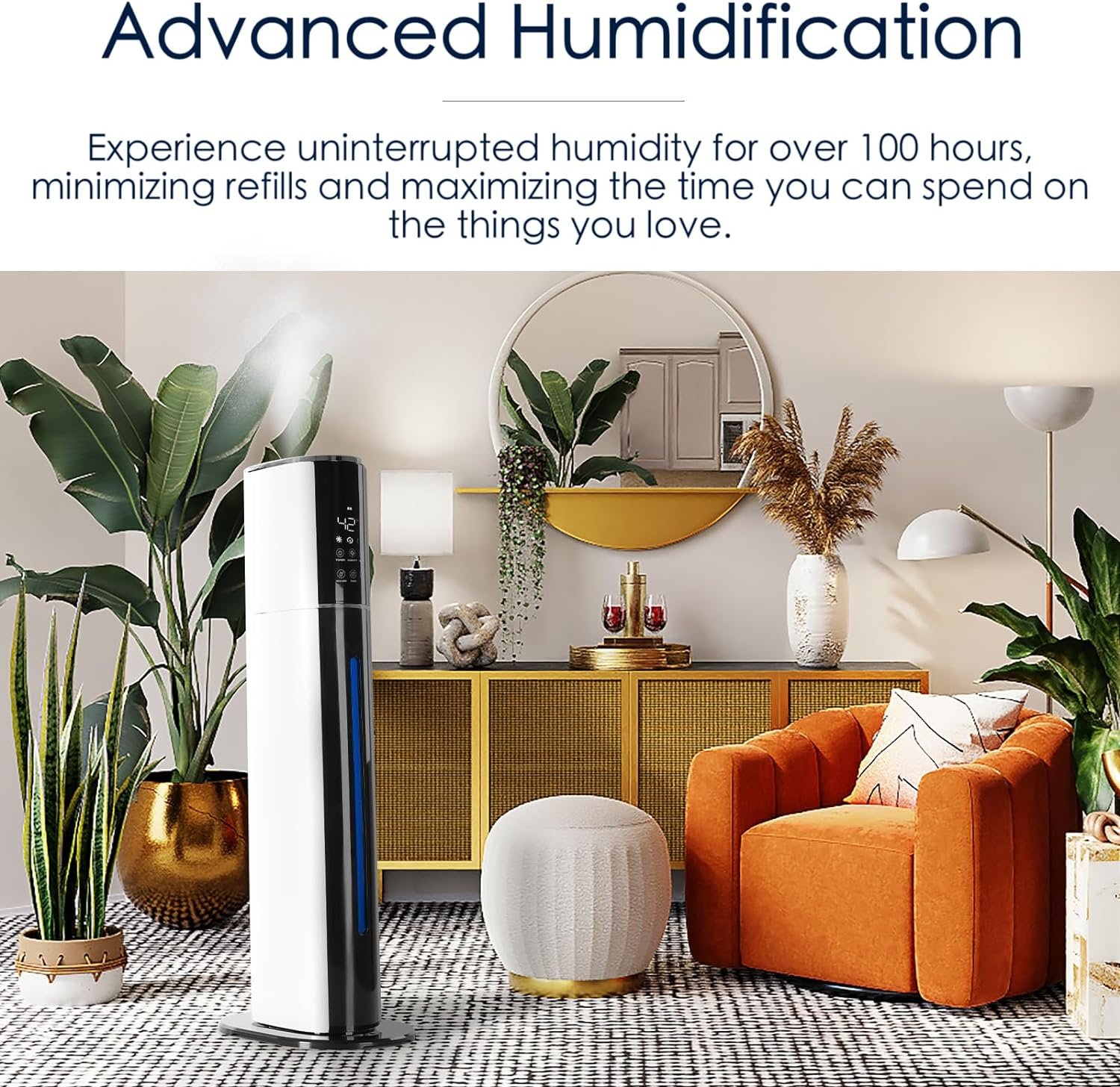 【Large Capacity】The whole house humidifier features a 9L 2.4 Gallon large capacity water tank that can support a powerful mist output for continuously up to 100 hours, satisfying the humidification of a 600ft² and above super large room, suitable for home, bedrooms, kitchens, living rooms and offices.