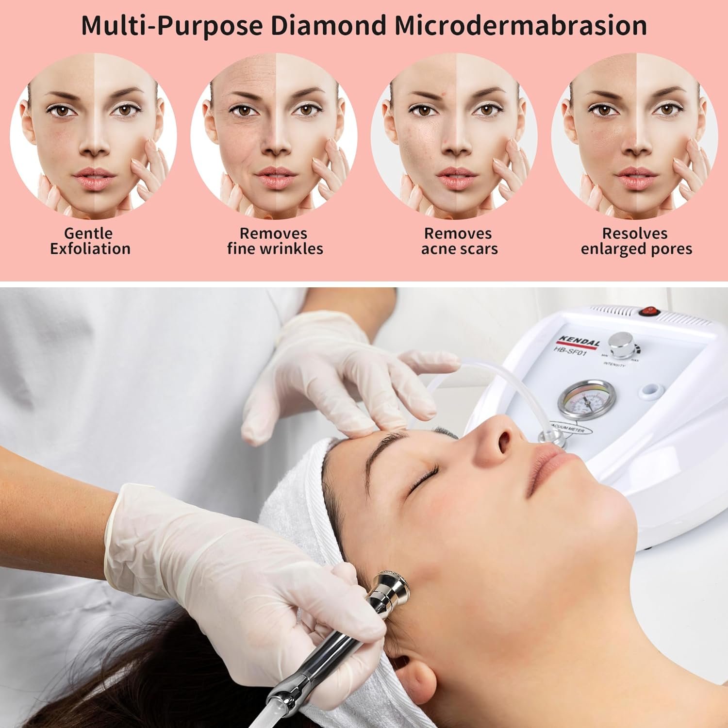 Diamond Dermabrasion: The Kendal Diamond Microdermabrasion Machine removes dirt from pores by using sterile diamond heads, and rub off the dead cells at the top skin layer followed by vacuuming suction removing particles along with any dirt and dead skin. effectively improves skin sagging. Allows your skin care products to penetrate deeper, giving you a better, longer-lasting effect.