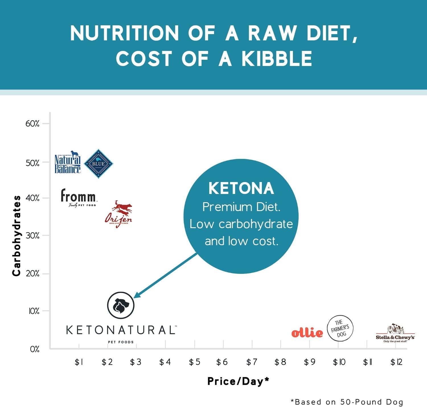 Ketona contains more protein and less carbohydrate per serving than most expensive, inconvenient raw and “fresh” diets.