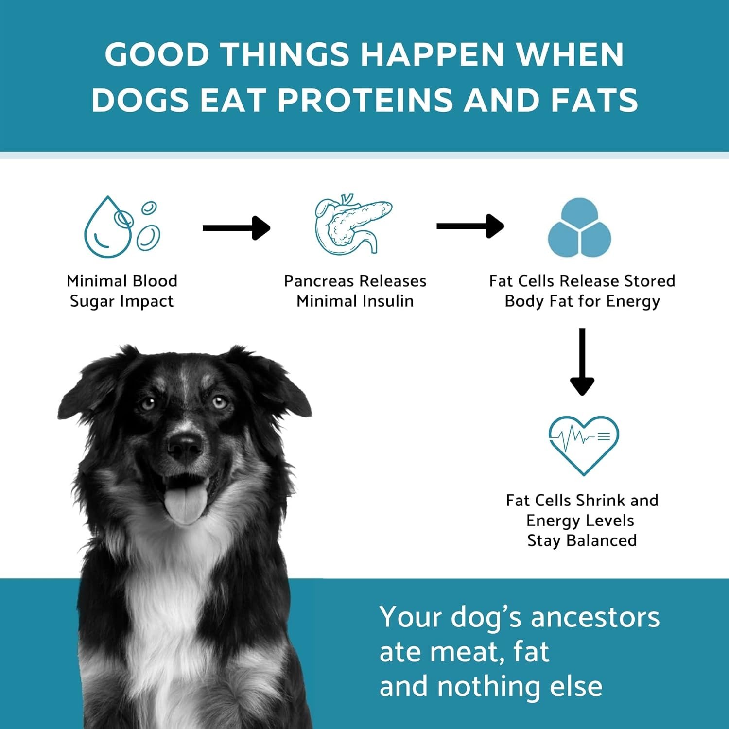 NATURAL: Keto is a dog’s natural diet. Fat and protein are essential. Carbs aren’t. Your dog’s ancestors ate meat, fat, and nothing else for 99.9% of their evolution. Mother nature knows best.
