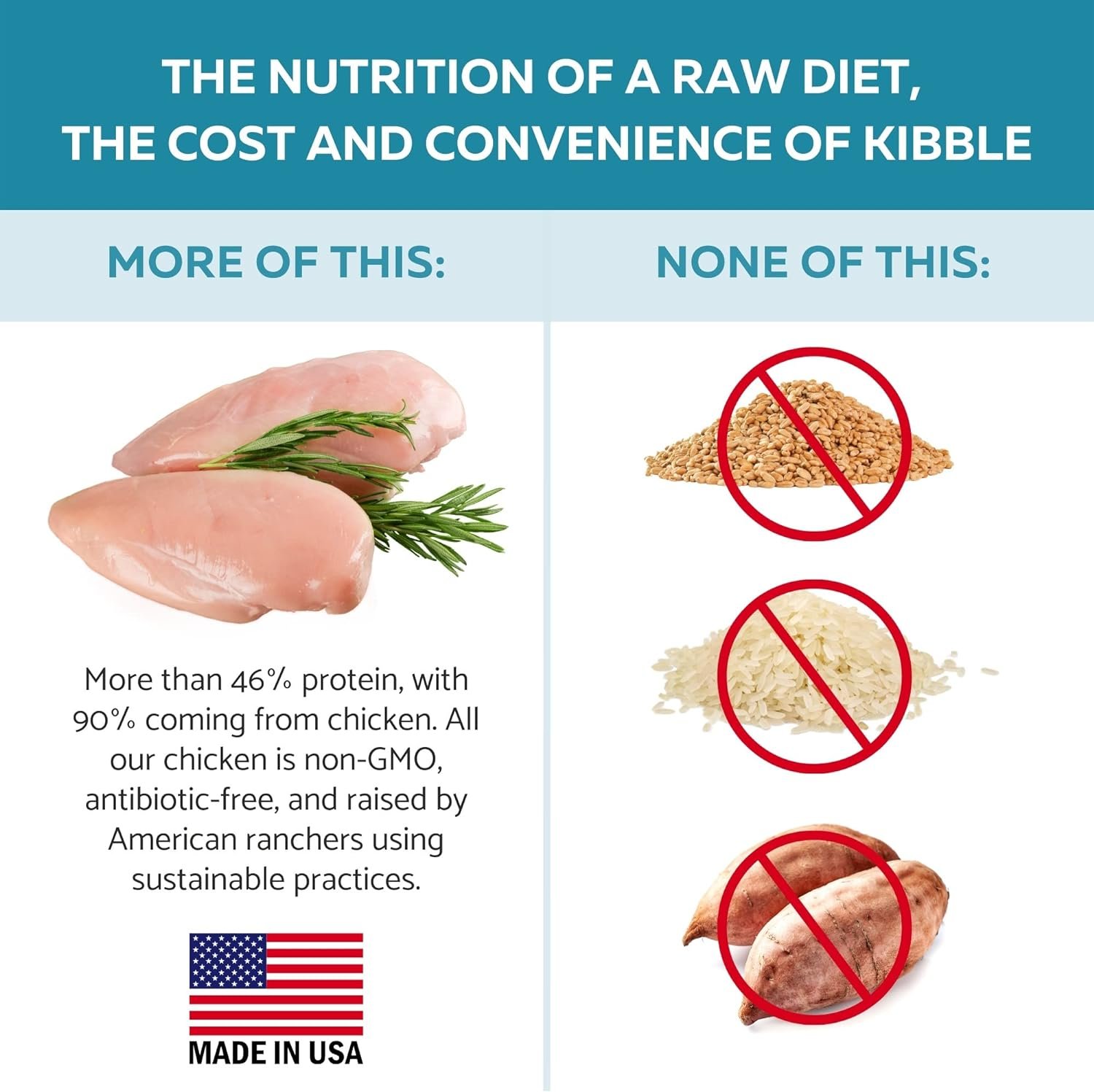 A grain-free dry dog food with 85% less carbohydrate than other leading “grain-free” brands (less than 5% total digestible carbohydrate).