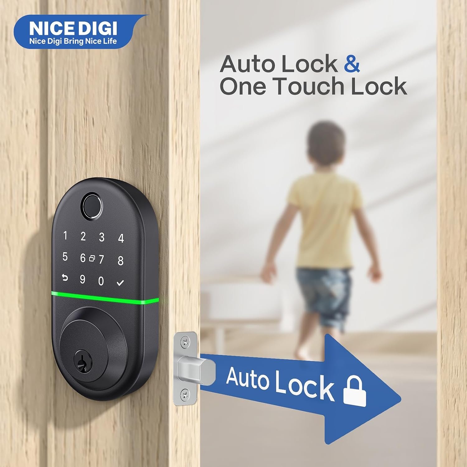 Manage Access with APP: Authorize unlock permissions for your family or friends with the NICE DIGI APP. Generate one-time passcords for your temporary visitors when you out. Check the unlock record in the APP to know who and when unlocked your door. You can manage more than 1000 locks with just one APP.
