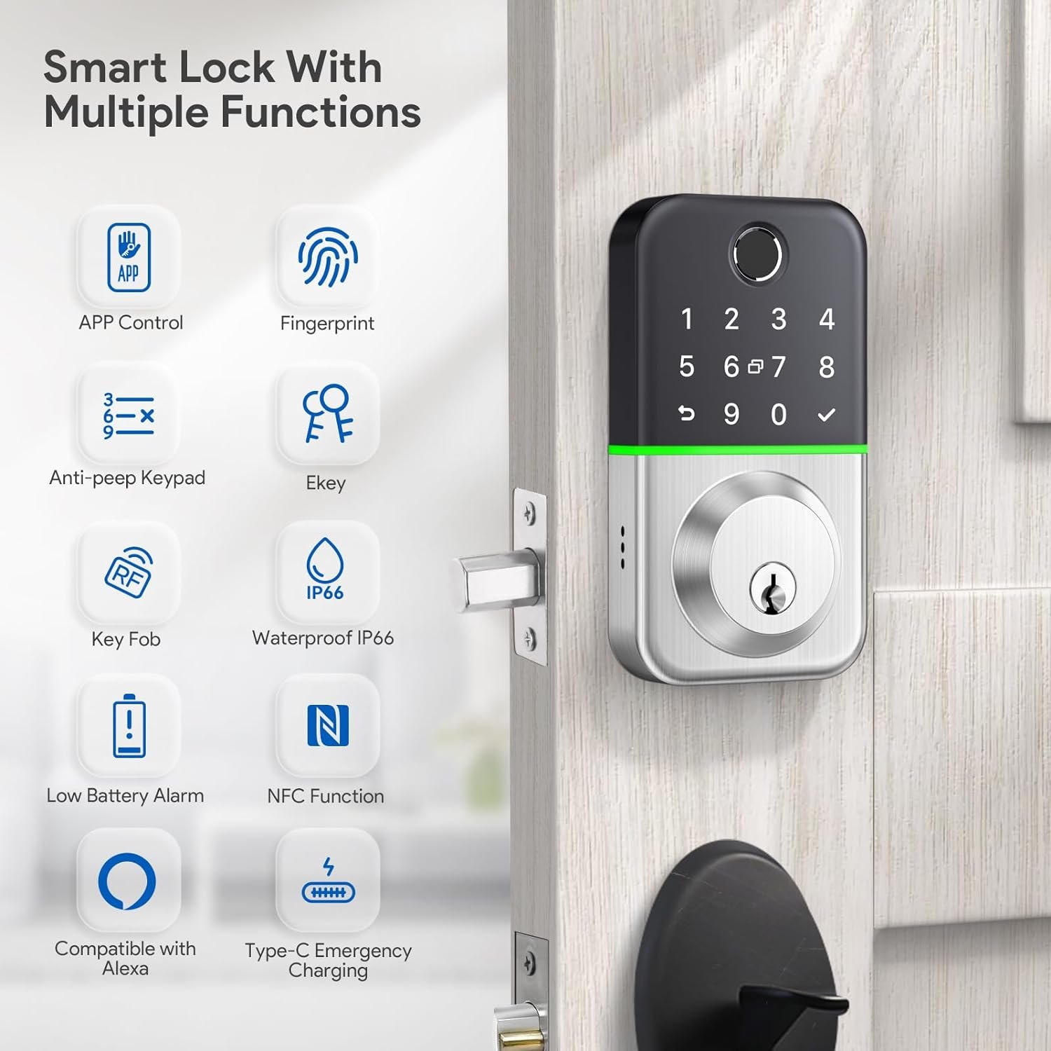 【Data Security Protection】The fingerprint door lock utilizes AES256 encryption technology, which can protect your data security. Our smart deadbolt lock is a reliable and secure choice for your home. No need to worry about data privacy being exposed anymore.