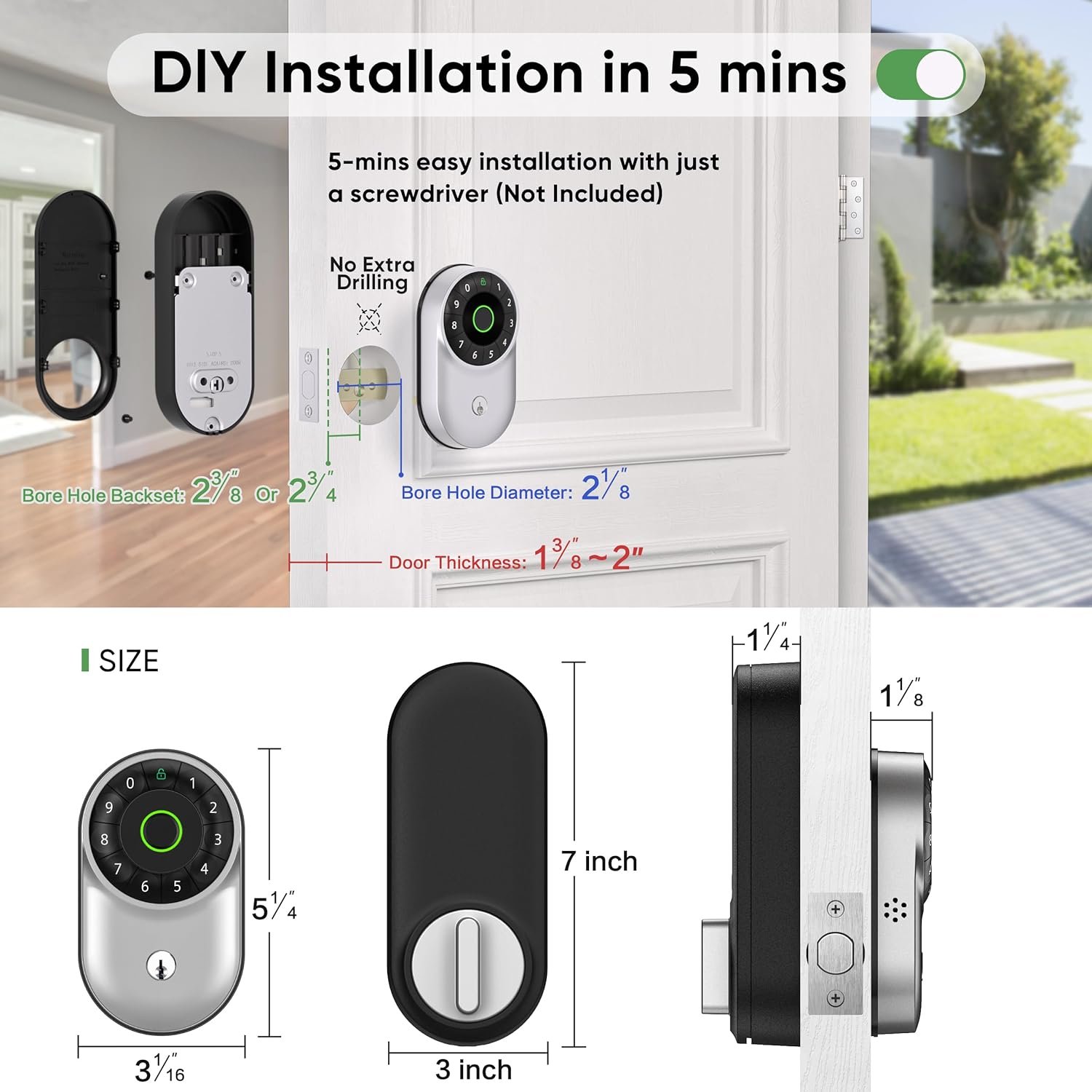 Easy Installation: Easy to install with just a screwdriver in 20 mins; no extra drilling needed; no hardwiring; can be installed on both right-handed and left-handed doors.