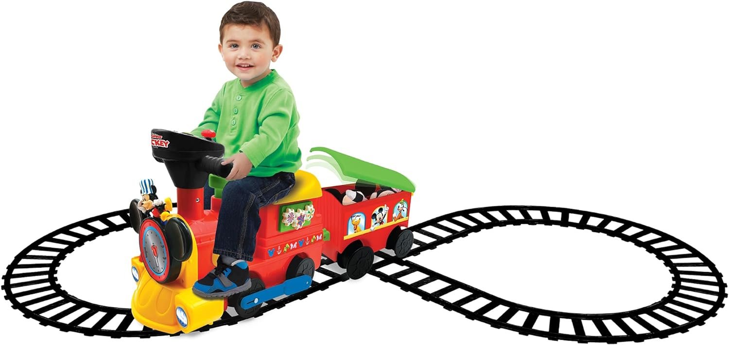 Kiddieland Toys Limited Battery-Powered Mickey Choo, 12 months to 36 months with Caboose & Tracks Ride On, Reflecting Colors May Vary ,9.5 x 14.25 x 31.5 inches