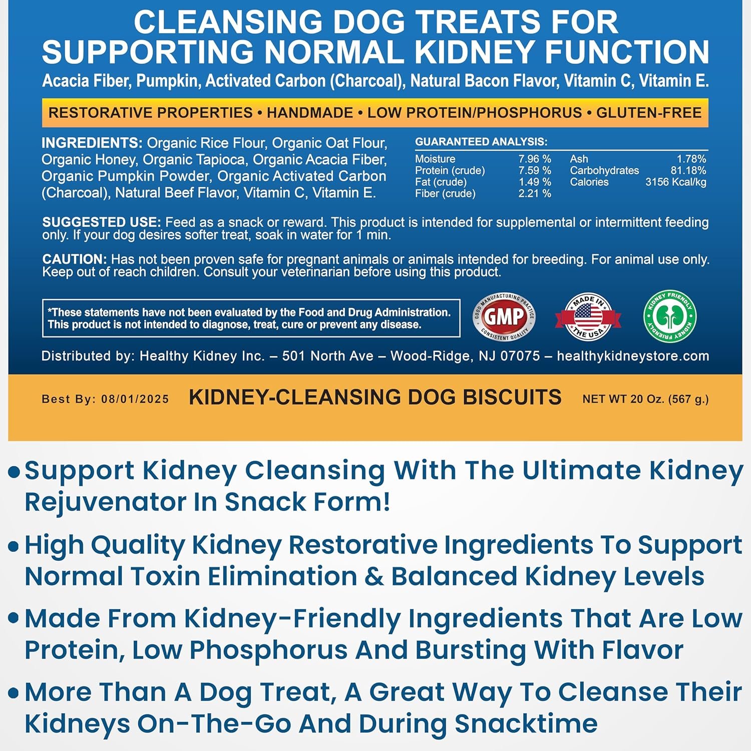 𝗧𝗔𝗜𝗟𝗢𝗥𝗘𝗗 𝗙𝗢𝗥 𝗥𝗘𝗡𝗔𝗟 𝗗𝗜𝗘𝗧𝗦: Our treats have been artfully designed for dogs on renal diets, offering an exclusive fusion of low protein, minimal phosphorus, and reduced sodium content, all while delivering an irresistibly delectable taste. These special treats are purpose-built to sustain long-term kidney health and kidney function without compromising on flavor. This perfect fusion ensures that your pet not only enjoys the taste but also reaps the benefits of enhanced kidney wellness.