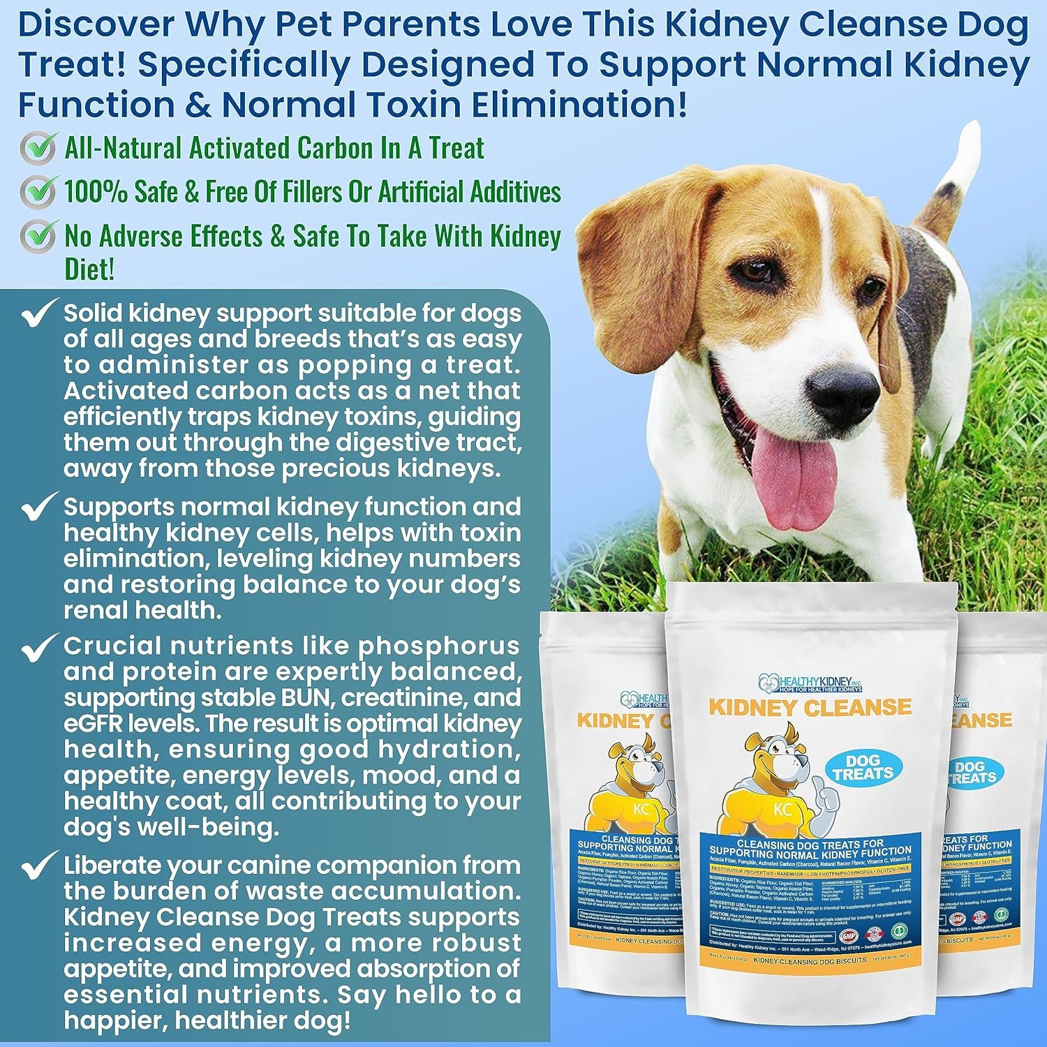 𝗖𝗢𝗠𝗣𝗥𝗘𝗛𝗘𝗡𝗦𝗜𝗩𝗘 𝗖𝗔𝗡𝗜𝗡𝗘 𝗖𝗔𝗥𝗘 𝗣𝗔𝗖𝗞𝗔𝗚𝗘: Our commitment to your pet’s well-being goes beyond tasty treats. In addition to our Kidney Cleanse Dog Treats, you’ll receive an e-book valued at $7.99, titled “Get Healthier Kidneys for Your Pet,” to further fortify your dog’s kidney health journey. Plus, take advantage of our expert Pet Health Coaching, providing a holistic approach to your pet’s overall well-being.