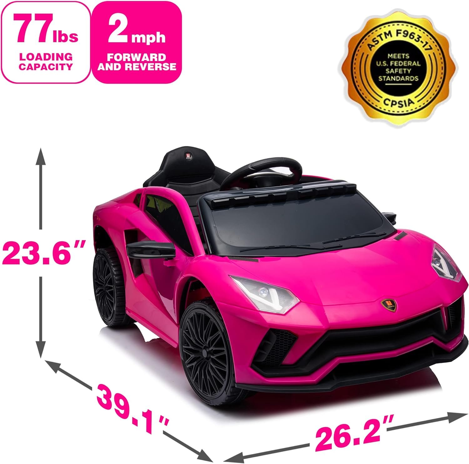 Safe & durable , Perfect gift : This ride on toy made with premium non-toxic plastic material with a safety belt. ASTM-compliant kids’ motorized car with maximum weight capacity of 77 lbs and ideal for kids 3-6 years old.