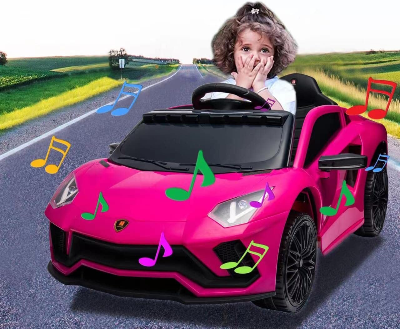 Equipped with Built-In Music, MP3 Input, LED Lights, while a Real Foot Pedal Accelerator creates a realistic driving experience.
