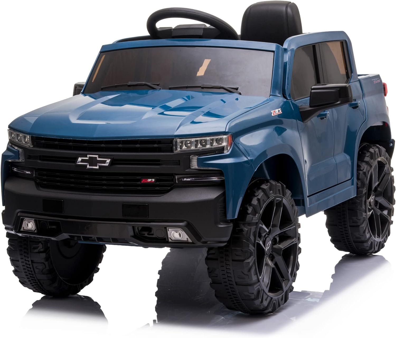 [STYLISH DESIGN] Officially licensed Chevrolet Silverado Trail Boss ride-on car looks like the real version. LED lights, startup sounds, and openable doors deliver an authentic driving experience that kids are sure to love.