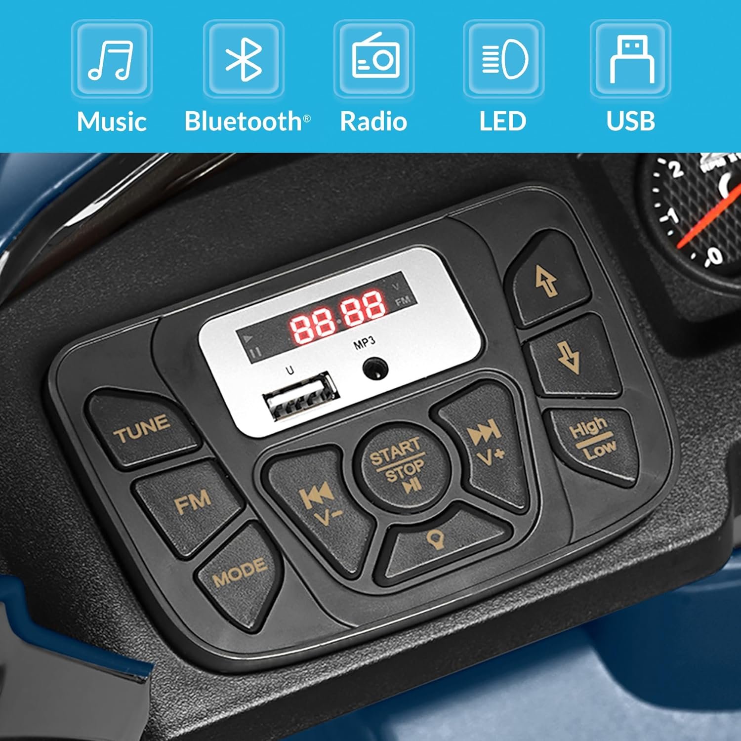 [POWERFUL & RECHARGEABLE] Comes with a charger and a rechargeable 12V battery with a charging time of 8-12 hrs. Kids can enjoy up to 1-2 hours of playtime. High performance Lead-acid battery ensures safety and longer endurance as well as environmental protection. Fitted with bluetooth wireless technology & MP3 for fun-filled entertainment.