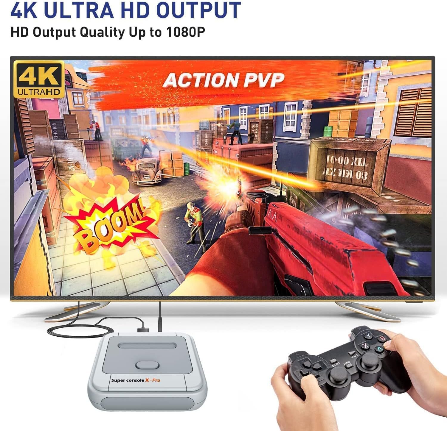 【Game & TV Systems In 1】Super console X PRO is equipped with an upgraded dual system. Support playing games, Downloading the app, Searching, and Watching TV online. Enrich our leisure time.
