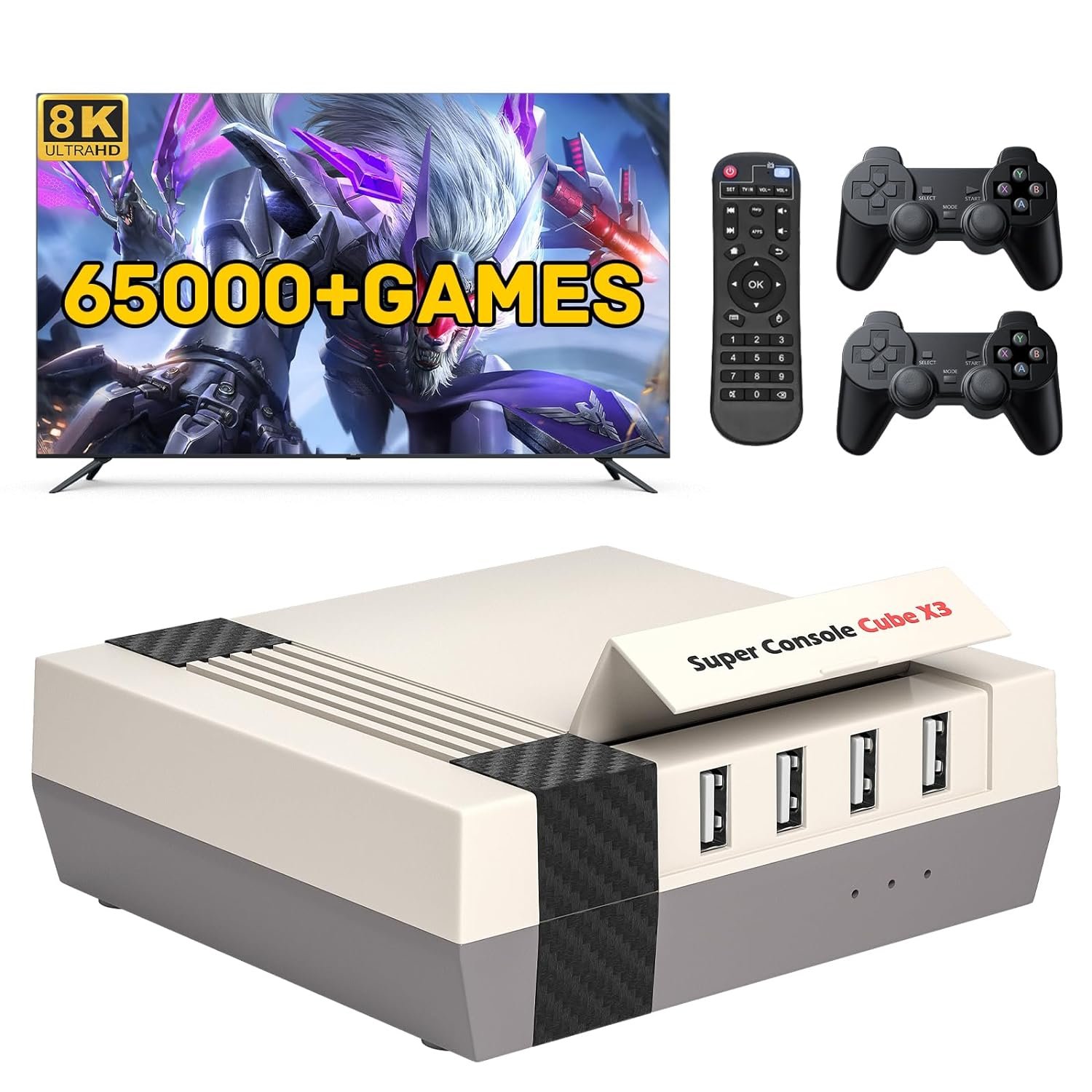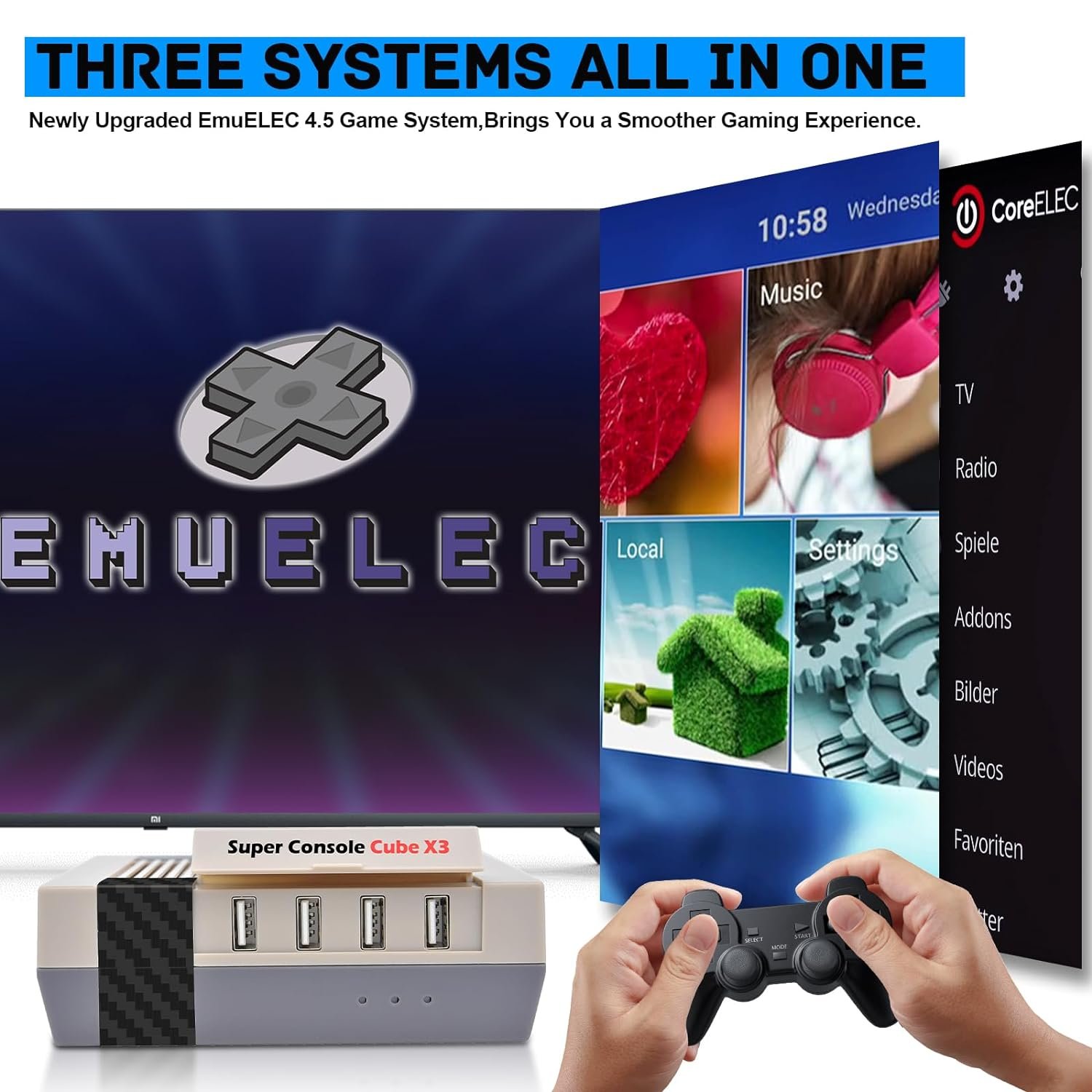 【Rich Classic Games】: Super Console Cube X3 game console built-in 65000+ games, compatible with most emulators, supports adding games by yourself and keeps game progress at any time. (Please contact us for a list of games)