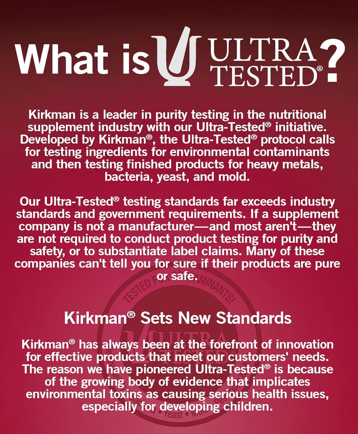 ULTRA TESTED: Our Ultra Tested testing standards far exceed industry standards and government requirements.