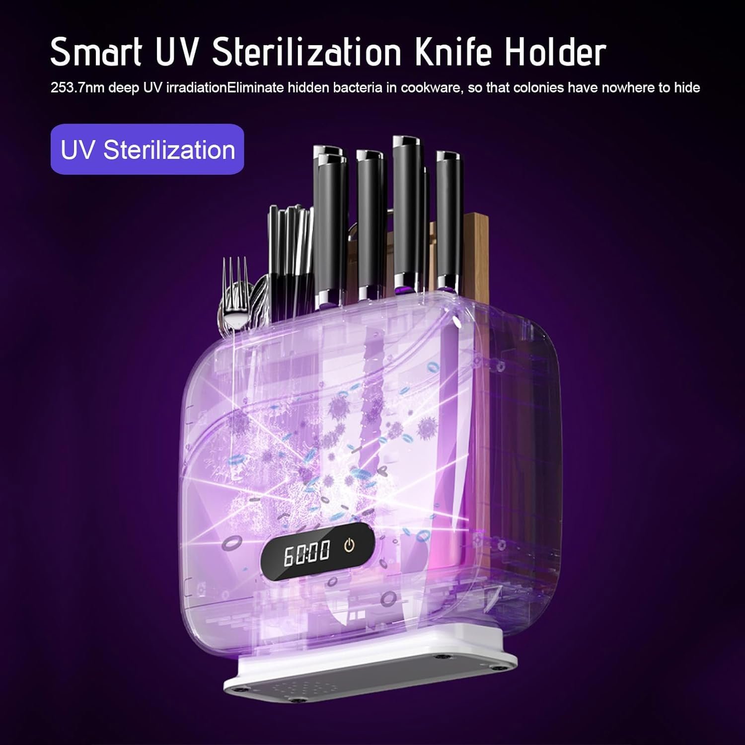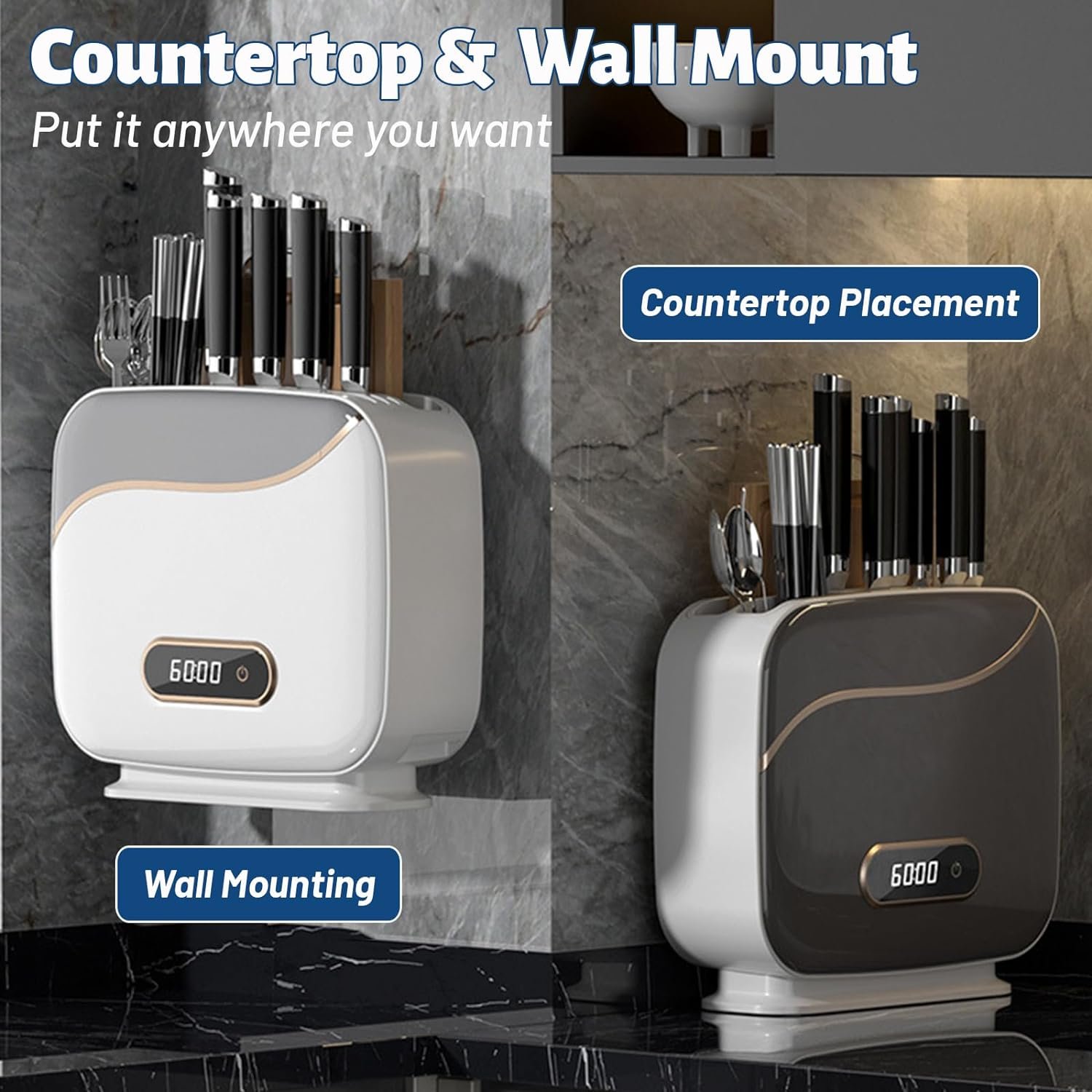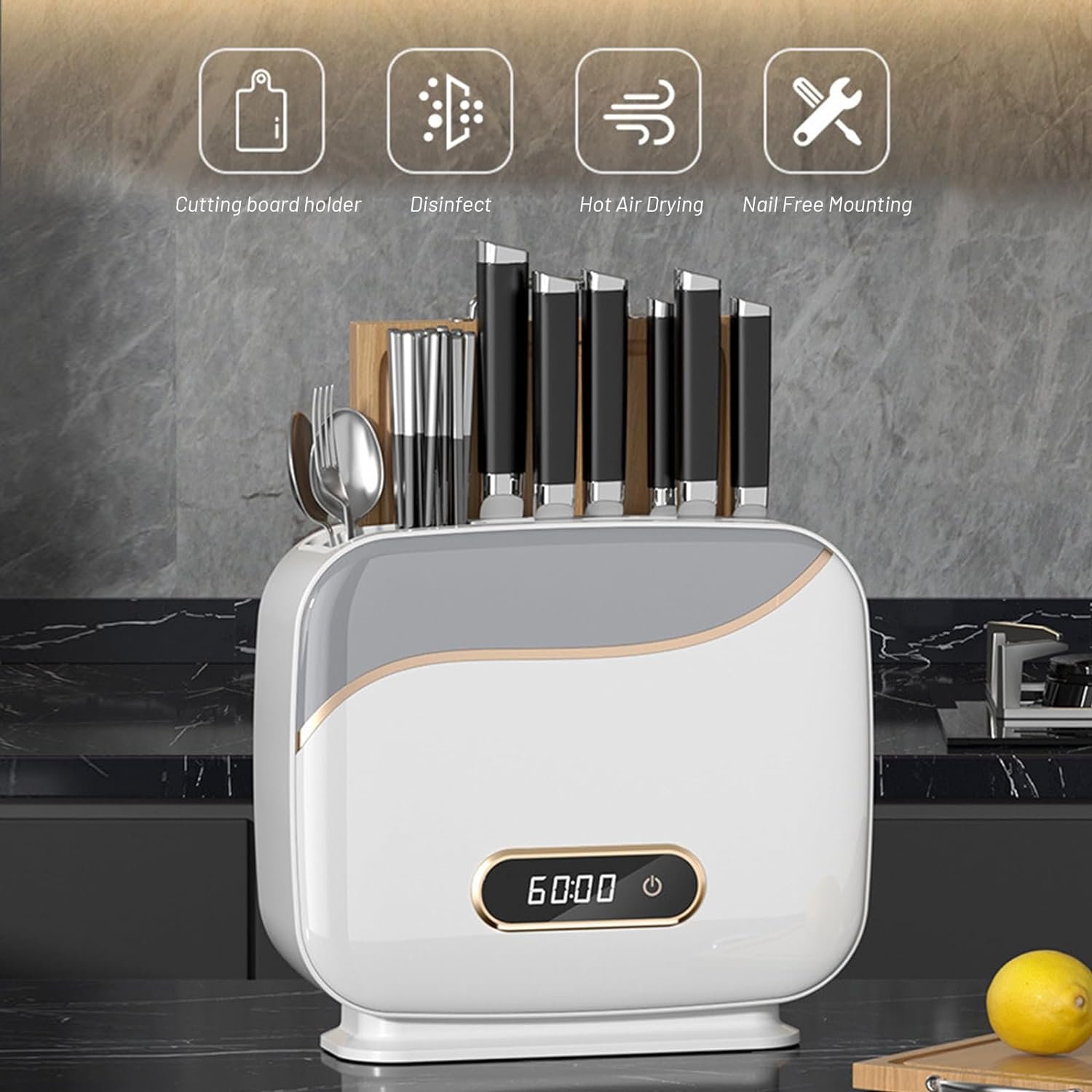 【Smart Cleaning】This smart knife rack is both cleaning and drying in one, a key to start the cleaning function and 360-degree hot air circulation, the formation of strong convection so that the dishes clean and dry, no water residue, no need for secondary cleaning before use, to improve the quality of life, to bring healthy life to the family!