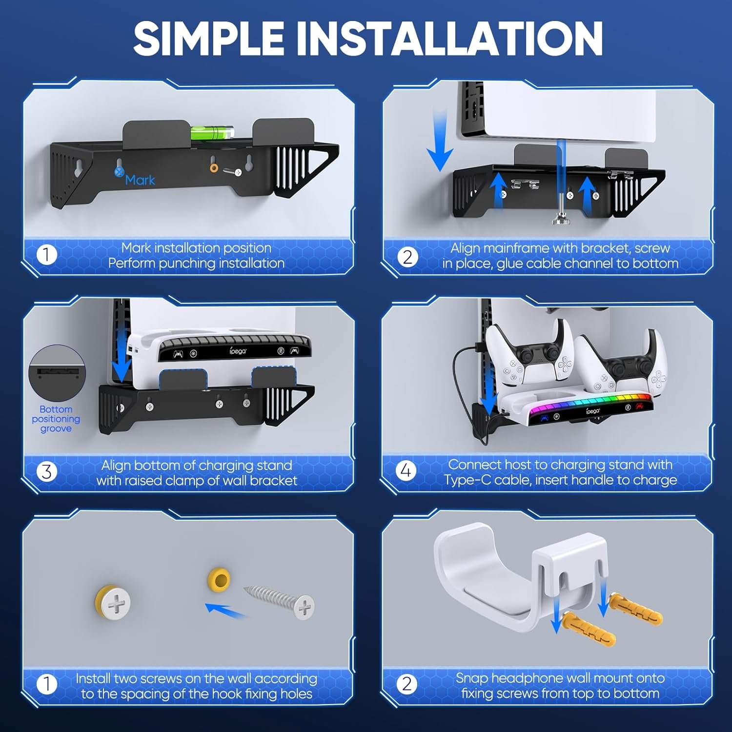 【Wide Compatibility】 This wall mount kit is compatible with PS5 Slim Disc & Digital edition and compatible with PS5 Disc & Digital edition all models of P5 consoles, offering versatile support for your gaming setup.