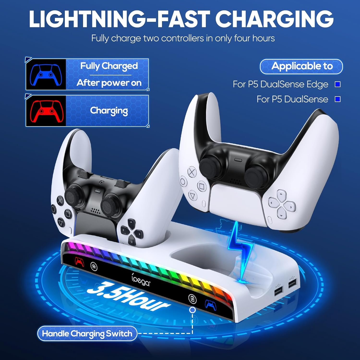 【Rechargeable Controller Dock】 The wall mount for PS5 accessories includes a convenient rechargeable dock compatible with both DualSense and Edge DualSense controllers, providing fast charging in just 3-4 hours while offering a secure and organized storage solution for your controllers.