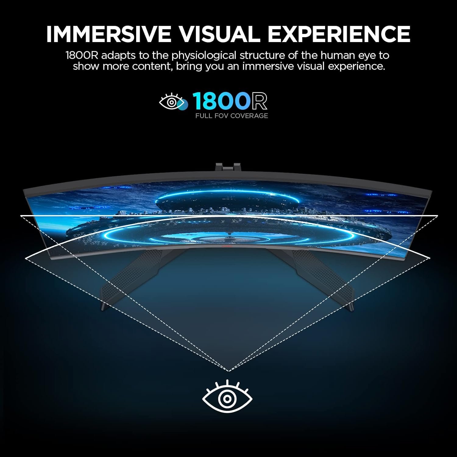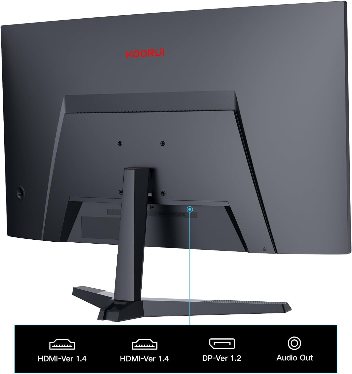 【 R1800 165Hz Gaming Monitor 】- KOORUI 24-inch curved gaming monitor, renowned for its ultra-smooth 165Hz delivers a seamlessly immersive visual experience, bringing your games to life with unparalleled fluidity. The 1800R curvature of this computer monitor enhances depth and dimension in your gameplay, ensuring flawlessly rendered angles for a truly captivating adventure.