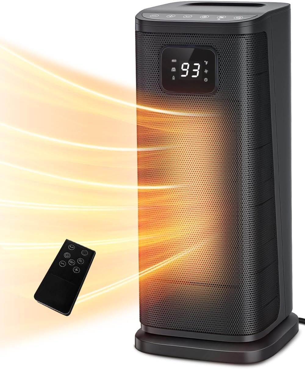 Intentionally Crafted For You: Our indoor ceramic space heaters are custom-made to fit your needs. Comes with a remote for easy temperature adjustment and a large front LED display for easy tracking. The tower heater features an automatic screen-off function, allowing you to enjoy a peaceful and warm environment, perfect for a quiet night’s sleep.